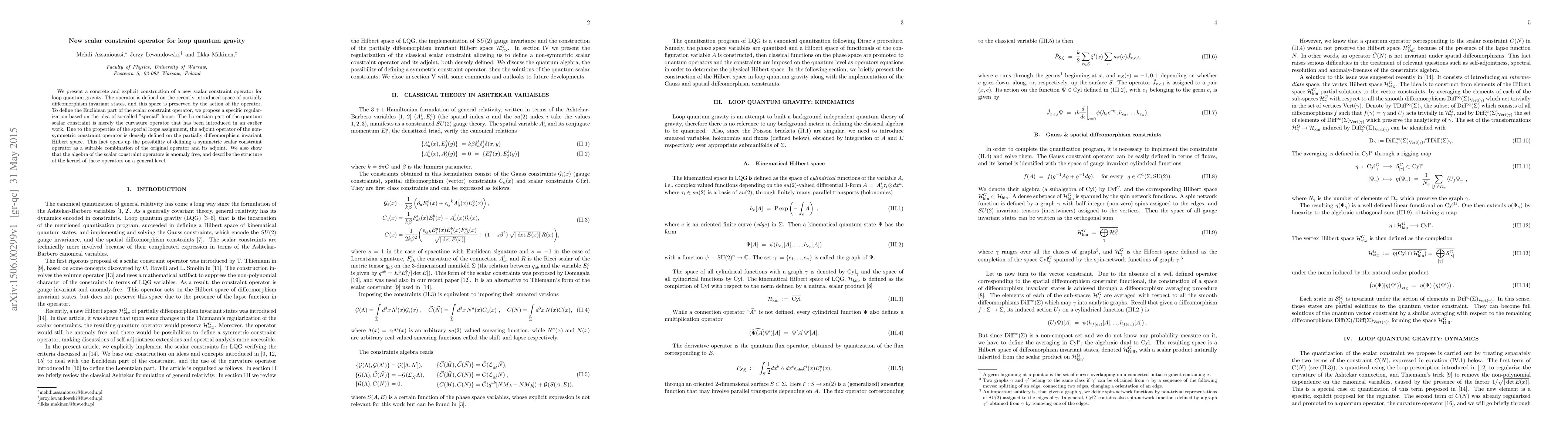 This paper constructs a new scalar constraint operator for loop quantum gravity, defined on a space of partially diffeomorphism invariant states. It introduces a regularization based on "special" loops for the Euclidean part and uses an earlier curvature operator for the Lorentzian part, ensuring the adjoint operator is densely defined, which facilitates defining a symmetric scalar constraint operator.