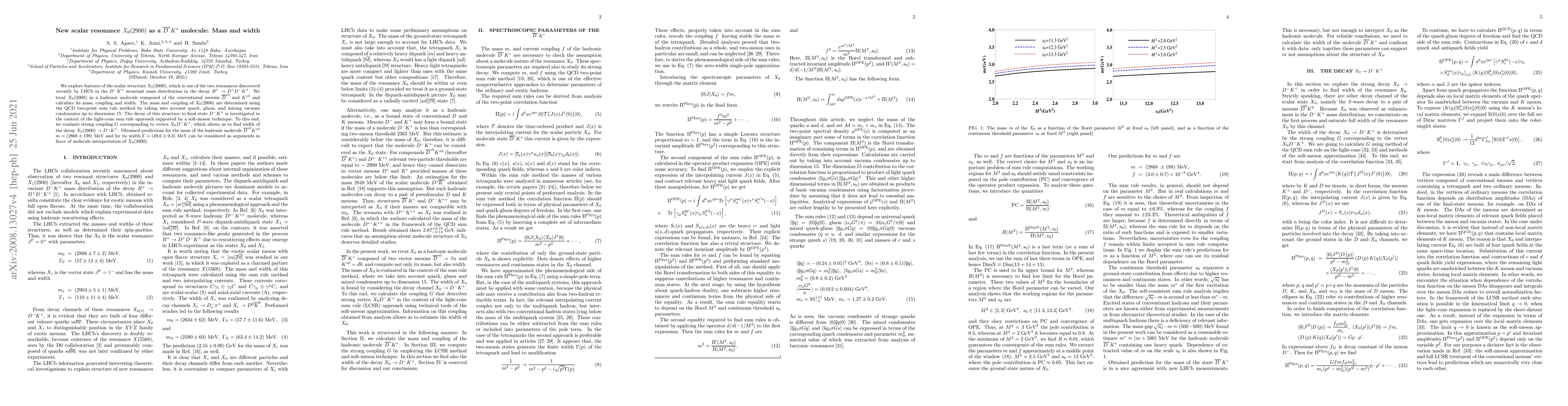 Researchers investigate a new particle, X0(2900), as a hadronic molecule composed of D*0 and K*0 mesons, calculating its mass, width, and coupling, which supports the molecule interpretation.