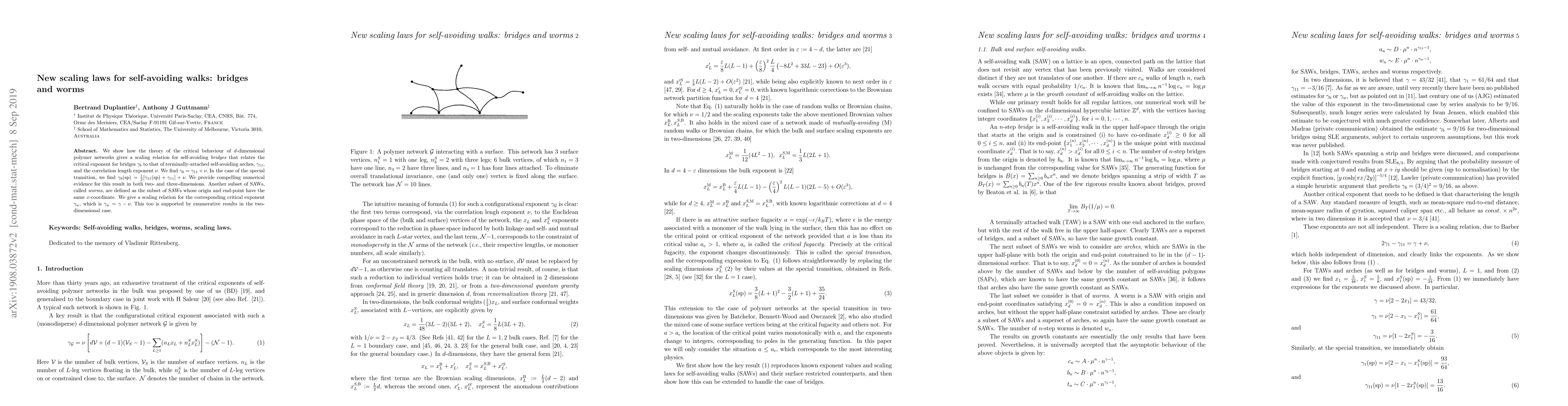 This paper presents new scaling laws for self-avoiding walks (SAWs) in polymer networks, specifically for "bridges" and "worms." It establishes a scaling relation for bridges, $\gamma_b = \gamma_{1,1}+\nu$, and for worms, $\gamma_w=\gamma-\nu$, providing numerical evidence for these relations in two and three dimensions.