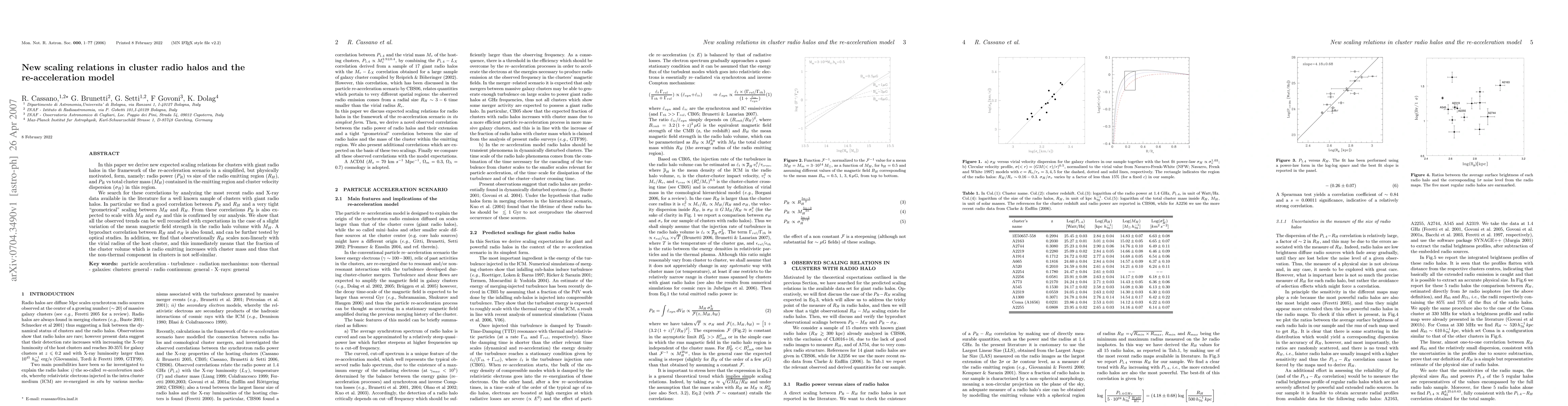 This paper derives new scaling relations for clusters with giant radio halos, finding strong correlations between radio power, size of the radio region, and total cluster mass, as well as a non-linear scaling between radio halo size and virial radius, indicating a non-self-similar non-thermal component in clusters.