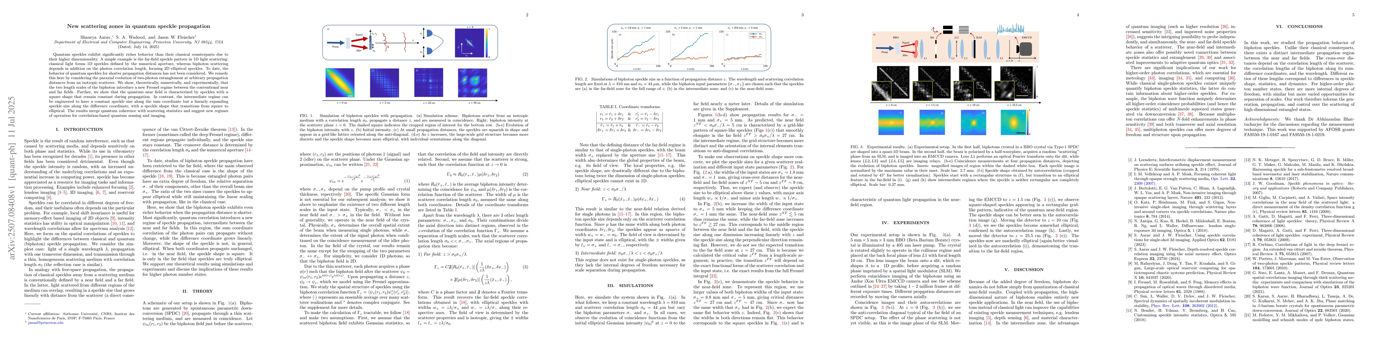 Quantum speckles exhibit significantly richer behavior than their classical counterparts due to their higher dimensionality. A simple example is the far-field speckle pattern in 1D light scattering: classical light forms 1D speckles defined by the numerical aperture, whereas biphoton scattering depends in addition on the photon correlation length, forming 2D elliptical speckles. To date, the behavior of quantum speckles for shorter propagation distances has not been considered. We remedy this here by considering the paraxial evolution of two-photon entanglement at arbitrary propagation distances from an isotropic scatterer. We show, theoretically, numerically, and experimentally, that the two length scales of the biphoton introduce a new Fresnel regime between the conventional near and far fields. Further, we show that the quantum near field is characterized by speckles with a square shape that remain constant during propagation. In contrast, the intermediate regime can be engineered to have a constant speckle size along the sum coordinate but a linearly expanding speckle size along the difference coordinate, with a speckle shape that transitions from square to elliptical. The results merge quantum coherence with scattering statistics and suggest new regimes of operation for correlation-based quantum sensing and imaging.