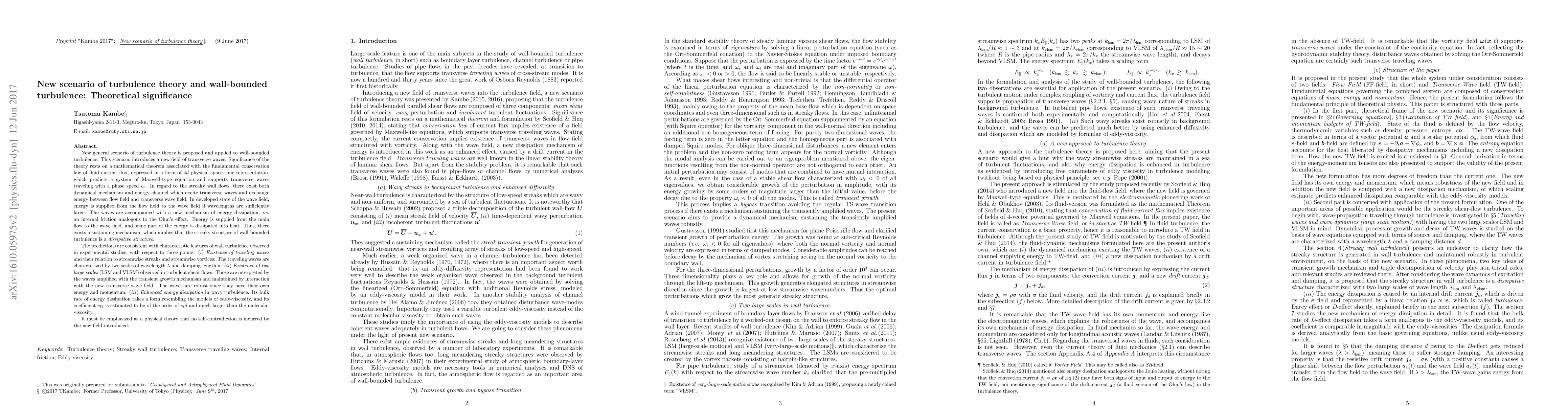 The paper introduces a new theoretical framework for understanding wall-bounded turbulence, incorporating transverse waves and a novel energy dissipation mechanism, supported by a mathematical theorem based on current flux conservation.