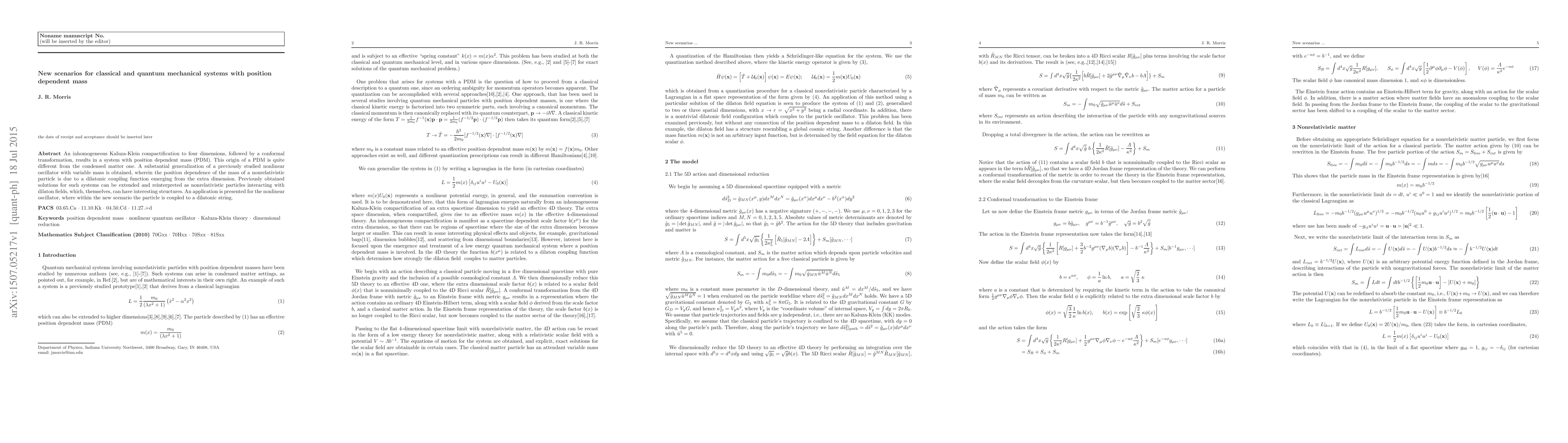 An inhomogeneous Kaluza-Klein compactification to four dimensions, followed by a conformal transformation, results in a system with position dependent mass (PDM). This origin of a PDM is quite different from the condensed matter one. A substantial generalization of a previously studied nonlinear oscillator with variable mass is obtained, wherein the position dependence of the mass of a nonrelativistic particle is due to a dilatonic coupling function emerging from the extra dimension. Previously obtained solutions for such systems can be extended and reinterpreted as nonrelativistic particles interacting with dilaton fields, which, themselves, can have interesting structures. An application is presented for the nonlinear oscillator, where within the new scenario the particle is coupled to a dilatonic string.
