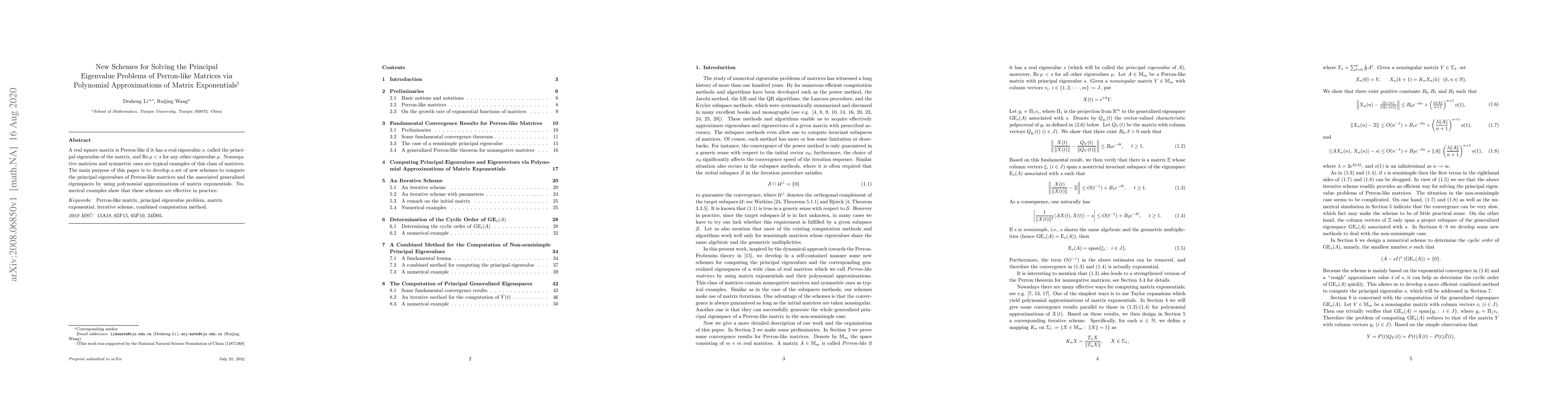 This paper introduces new computational schemes for determining the principal eigenvalues of Perron-like matrices using polynomial approximations of matrix exponentials. The proposed methods are shown to be effective in practice through numerical examples.