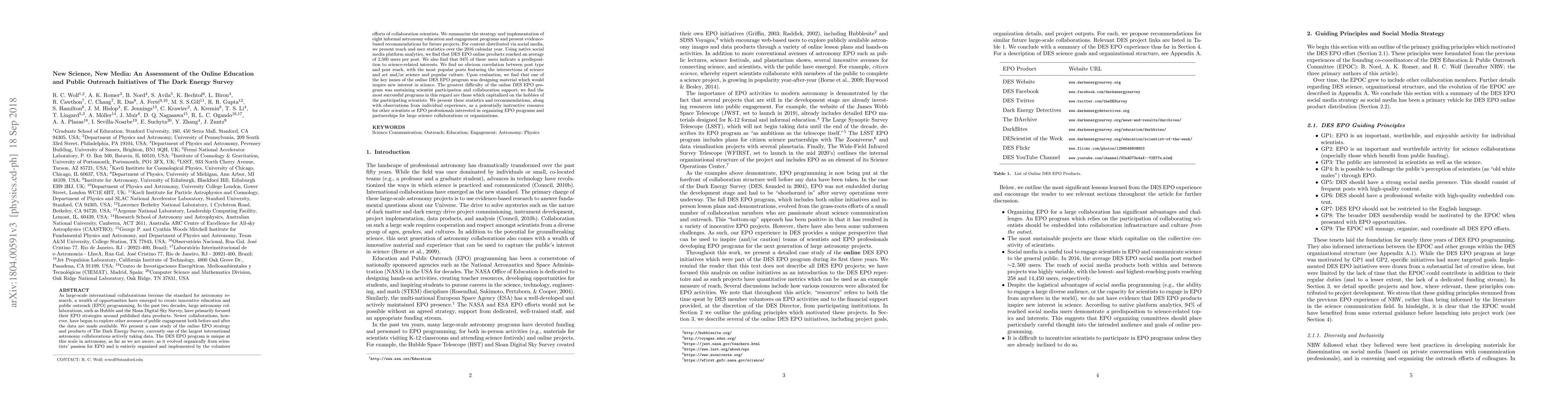 As large-scale international collaborations become the standard for astronomy research, a wealth of opportunities have emerged to create innovative education and public outreach (EPO) programming. In the past two decades, large collaborations have focused EPO strategies around published data products. Newer collaborations have begun to explore other avenues of public engagement before and after data are made available. We present a case study of the online EPO program of The Dark Energy Survey, currently one of the largest international astronomy collaborations actively taking data. DES EPO is unique at this scale in astronomy, as far as we are aware, as it evolved organically from scientists' passion for EPO and is entirely organized and implemented by the volunteer efforts of collaboration scientists. We summarize the strategy and implementation of eight EPO initiatives. For content distributed via social media, we present reach and user statistics over the 2016 calendar year. DES EPO online products reached ~2,500 users per post, and 94% of these users indicate a predisposition to science-related interests. We find no obvious correlation between post type and post reach, with the most popular posts featuring the intersections of science and art and/or popular culture. We conclude that one key issue of the online DES EPO program was designing material which would inspire new interest in science. The greatest difficulty of the online DES EPO program was sustaining scientist participation and collaboration support; the most successful programs are those which capitalized on the hobbies of participating scientists. We present statistics and recommendations, along with observations from individual experience, as a potentially instructive resource for scientists or EPO professionals interested in organizing EPO programs and partnerships for large science collaborations or organizations.