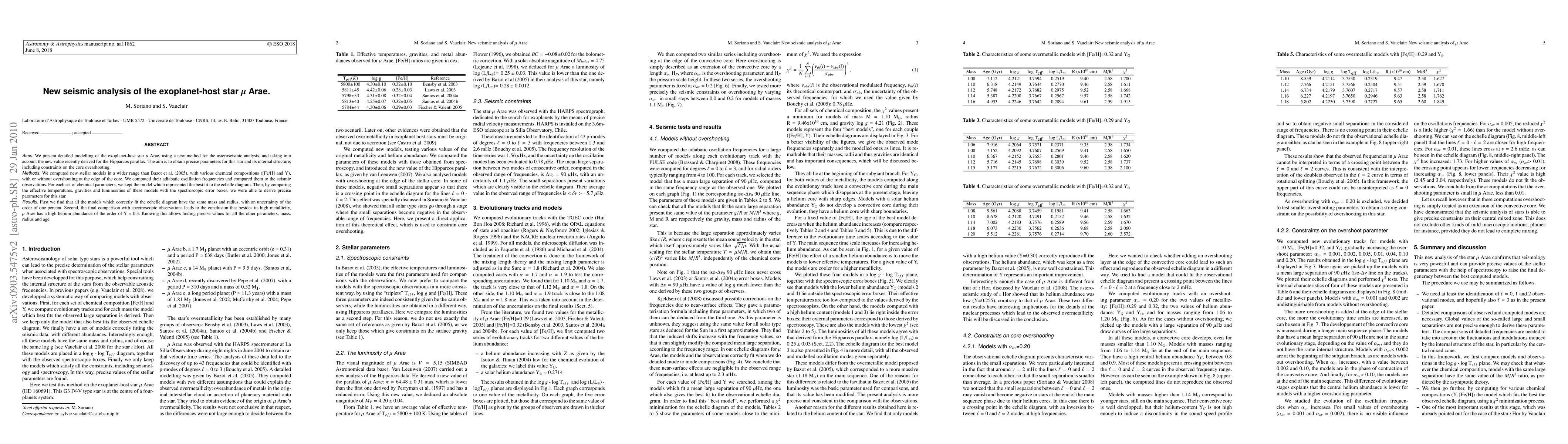 We present detailed modelling of the exoplanet-host star Mu Arae, using a new method for the asteroseismic analysis, and taking into account the new value recently derived for the Hipparcos parallax. The aim is to obtain precise parameters for this star and its internal structure, including constraints on the core overshooting. We computed new stellar models in a wider range than Bazot et al. (2005), with various chemical compositions ([Fe/H] and Y), with or without overshooting at the edge of the core. We computed their adiabatic oscillation frequencies and compared them to the seismic observations. For each set of chemical parameters, we kept the model which represented the best fit to the echelle diagram. Then, by comparing the effective temperatures, gravities and luminosities of these models with the spectroscopic error boxes, we were able to derive precise parameters for this star. First we find that all the models which correctly fit the echelle diagram have the same mass and radius, with an uncertainty of the order of one percent. Second, the final comparison with spectroscopic observations leads to the conclusion that besides its high metallicity, Mu Arae has a high helium abundance of the order of Y=0.3. Knowing this allows finding precise values for all the other parameters, mass, radius and age.