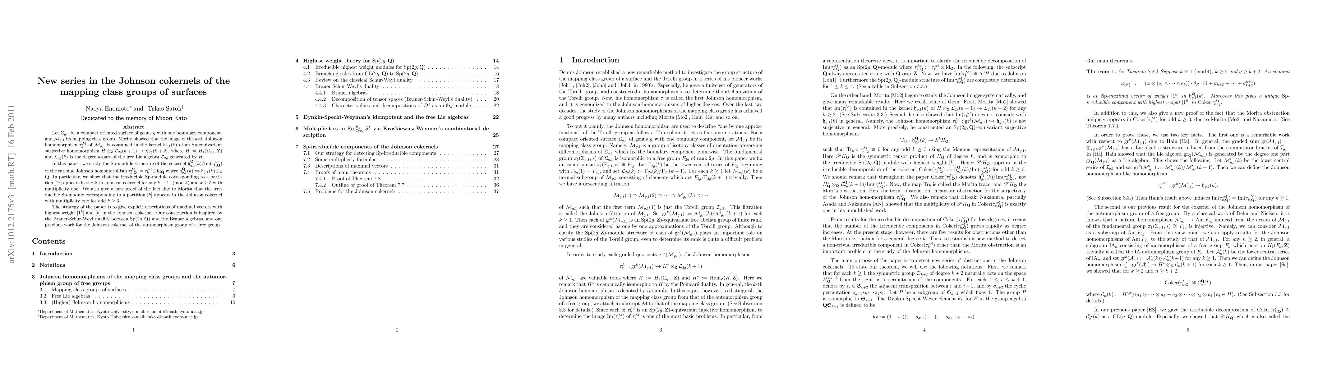 This paper investigates the Sp-module structure of the cokernel of the Johnson homomorphism for mapping class groups of surfaces, identifying Sp-irreducible components with highest weights [1^k] and [k], and proving their multiplicities are all equal to one.