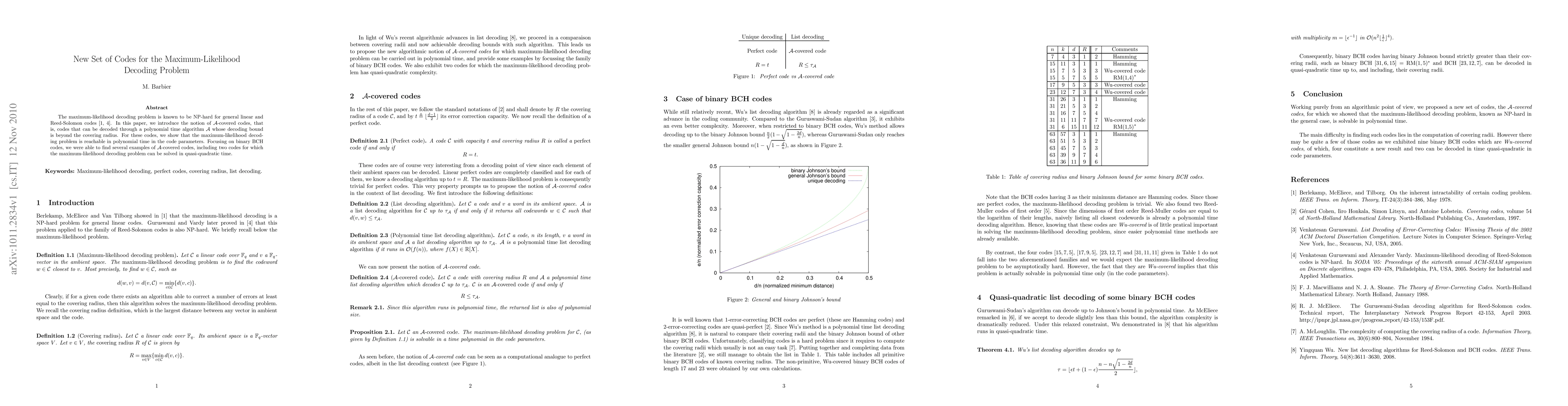 The maximum-likelihood decoding problem is known to be NP-hard for general linear and Reed-Solomon codes. In this paper, we introduce the notion of A-covered codes, that is, codes that can be decoded through a polynomial time algorithm A whose decoding bound is beyond the covering radius. For these codes, we show that the maximum-likelihood decoding problem is reachable in polynomial time in the code parameters. Focusing on bi- nary BCH codes, we were able to find several examples of A-covered codes, including two codes for which the maximum-likelihood decoding problem can be solved in quasi-quadratic time.