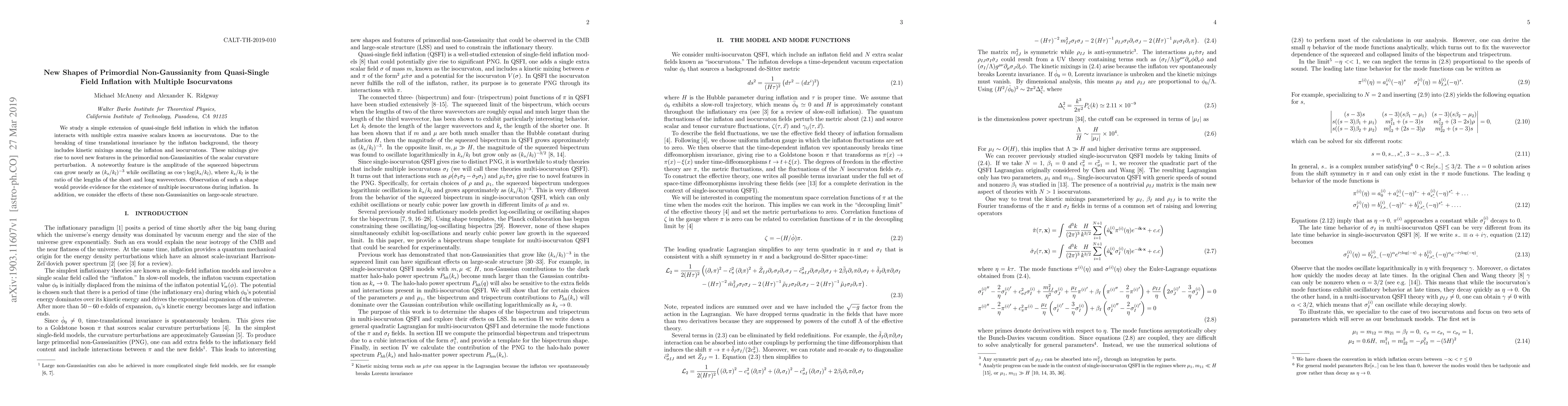 We study a simple extension of quasi-single field inflation in which the inflaton interacts with multiple extra massive scalars known as isocurvatons. Due to the breaking of time translational invariance by the inflaton background, the theory includes kinetic mixings among the inflaton and isocurvatons. These mixings give rise to novel new features in the primordial non-Gaussianities of the scalar curvature perturbation. A noteworthy feature is the amplitude of the squeezed bispectrum can grow nearly as $(k_s/k_l)^{-3}$ while oscillating as ${\rm \cos\gamma \log}(k_s/k_l)$, where $k_s/k_l$ is the ratio of the lengths of the short and long wavevectors. Observation of such a shape would provide evidence for the existence of multiple isocurvatons during inflation. In addition, we consider the effects of these non-Gaussianities on large-scale structure.
