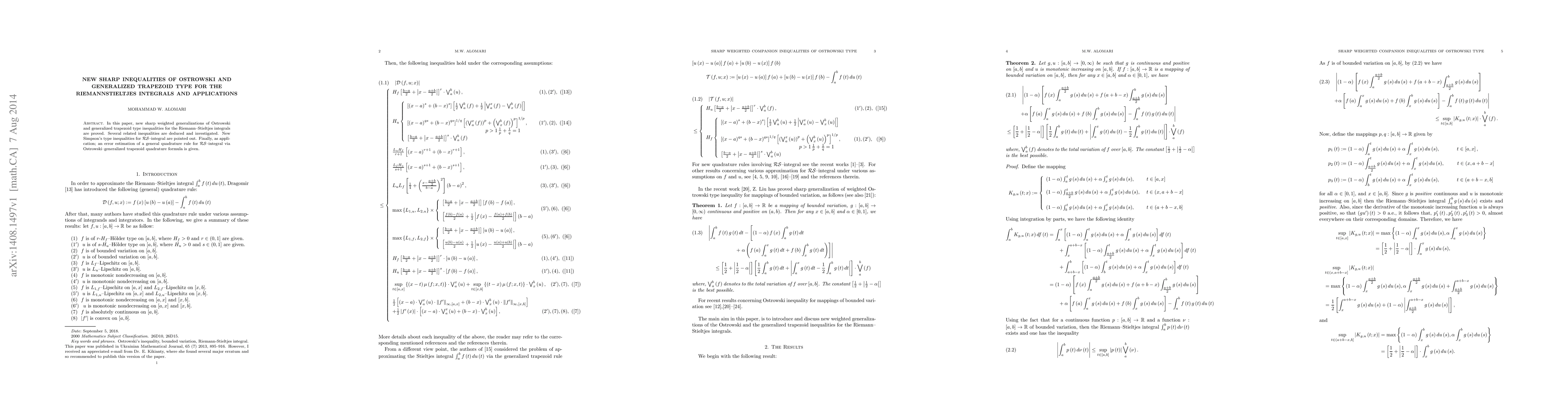 This paper presents new sharp weighted generalizations of Ostrowski and generalized trapezoid type inequalities for Riemann-Stieltjes integrals, along with related inequalities and Simpson's type inequalities. An application includes an error estimation for a quadrature rule using the Ostrowski-generalized trapezoid quadrature formula.