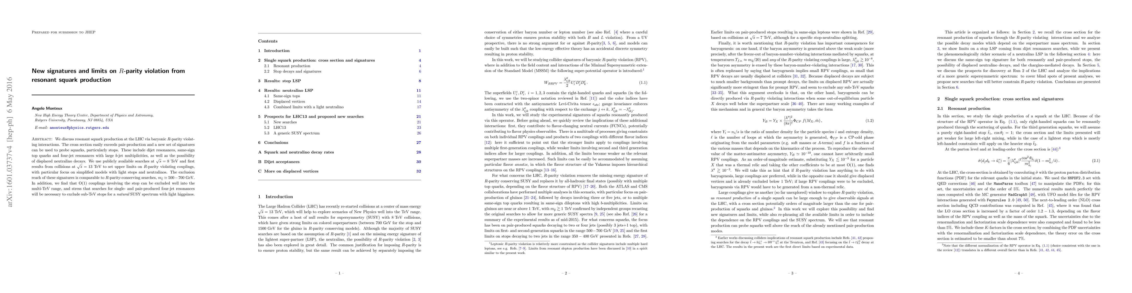 We discuss resonant squark production at the LHC via baryonic $R$-parity violating interactions. The cross section easily exceeds pair-production and a new set of signatures can be used to probe squarks, particularly stops. These include dijet resonances, same-sign top quarks and four-jet resonances with large $b$-jet multiplicities, as well as the possibility of displaced neutralino decays. We use publicly available searches at $\sqrt{s}=8$ TeV and first results from collisions at $\sqrt{s}=13$ TeV to set upper limits on $R$-parity violating couplings, with particular focus on simplified models with light stops and neutralinos. The exclusion reach of these signatures is comparable to $R$-parity-conserving searches, $m_{\tilde t}\simeq 500-700$ GeV. In addition, we find that O(1) couplings involving the stop can be excluded well into the multi-TeV range, and stress that new searches for single- and pair-produced four-jet resonances will be necessary to exclude sub-TeV stops for a natural SUSY spectrum with light higgsinos.