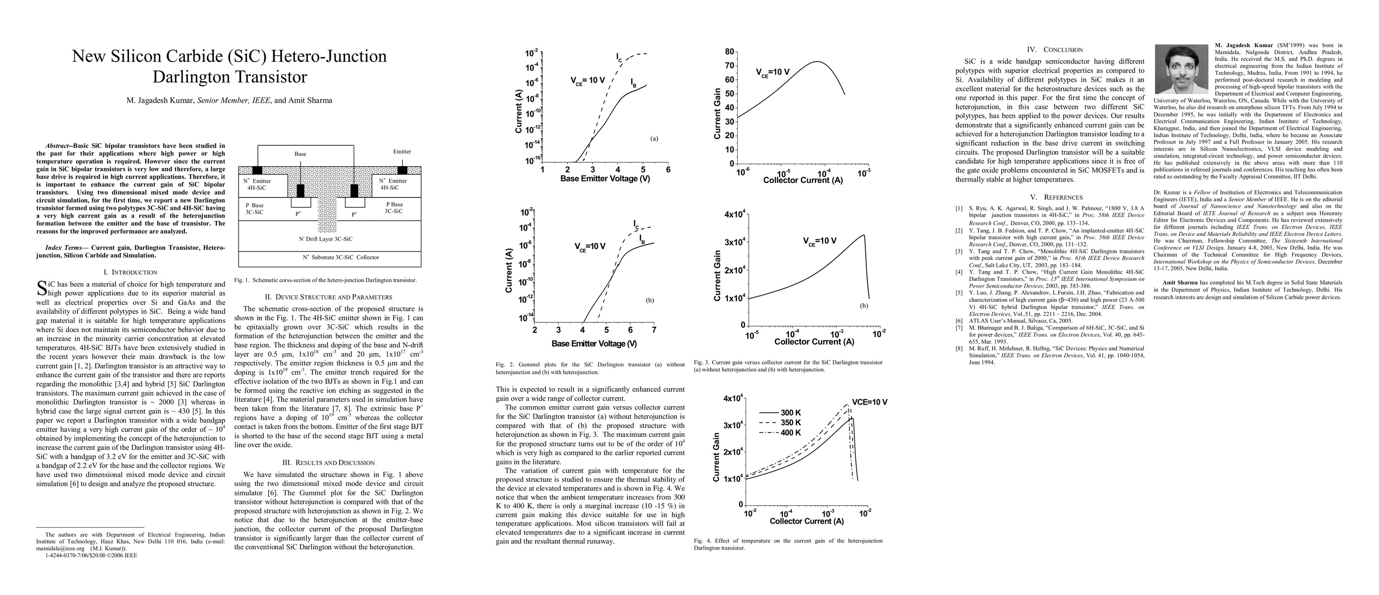 Basic SiC bipolar transistors have been studied in the past for their applications where high power or high temperature operation is required. However since the current gain in SiC bipolar transistors is very low and therefore, a large base drive is required in high current applications. Therefore, it is important to enhance the current gain of SiC bipolar transistors. Using two dimensional mixed mode device and circuit simulation, for the first time, we report a new Darlington transistor formed using two polytypes 3C-SiC and 4H-SiC having a very high current gain as a result of the heterojunction formation between the emitter and the base of transistor. The reasons for the improved performance are analyzed.