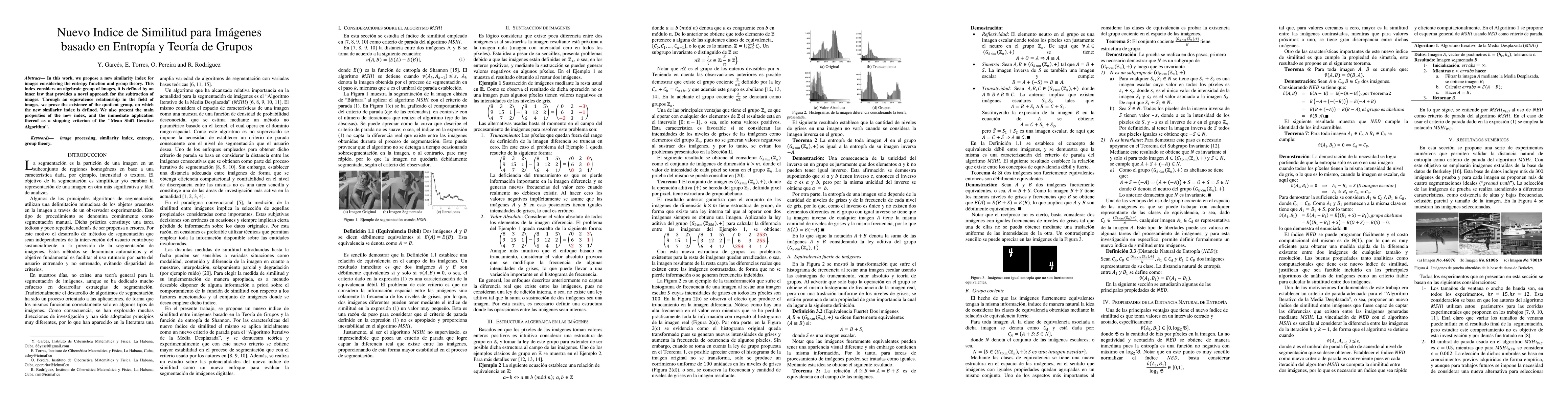 In this work, we propose a new similarity index for images considering the entropy function and group theory. This index considers an algebraic group of images, it is defined by an inner law that provides a novel approach for the subtraction of images. Through an equivalence relationship in the field of images, we prove the existence of the quotient group, on which the new similarity index is defined. We also present the main properties of the new index, and the immediate application thereof as a stopping criterion of the "Mean Shift Iterative Algorithm".