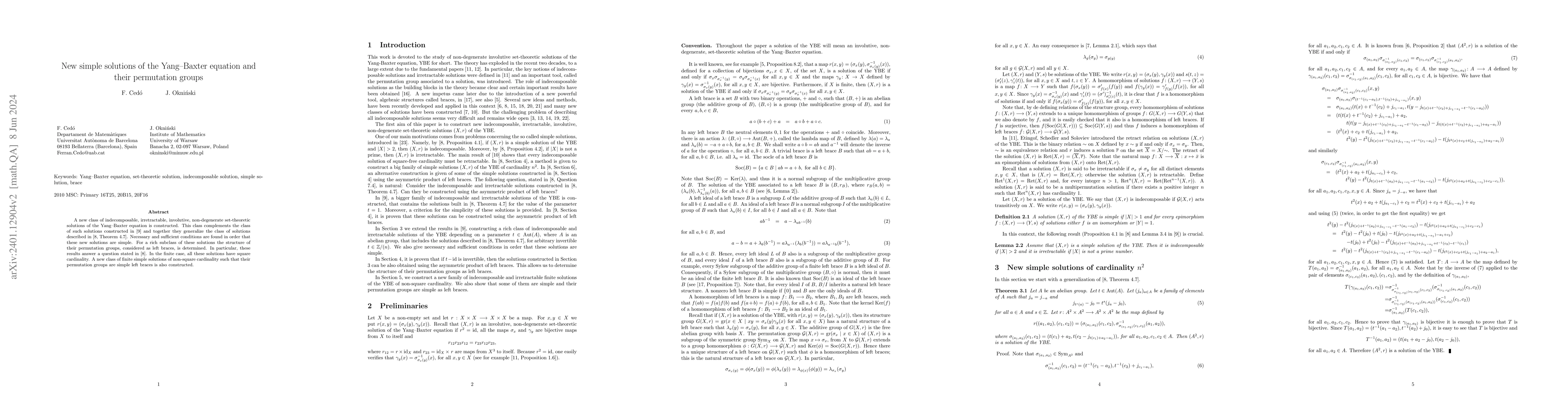 The paper constructs a new class of simple, indecomposable solutions to the Yang-Baxter equation, complementing previous work and generalizing earlier solutions. It determines the permutation groups of these solutions, particularly identifying simple left braces, and answers a question posed in prior research.