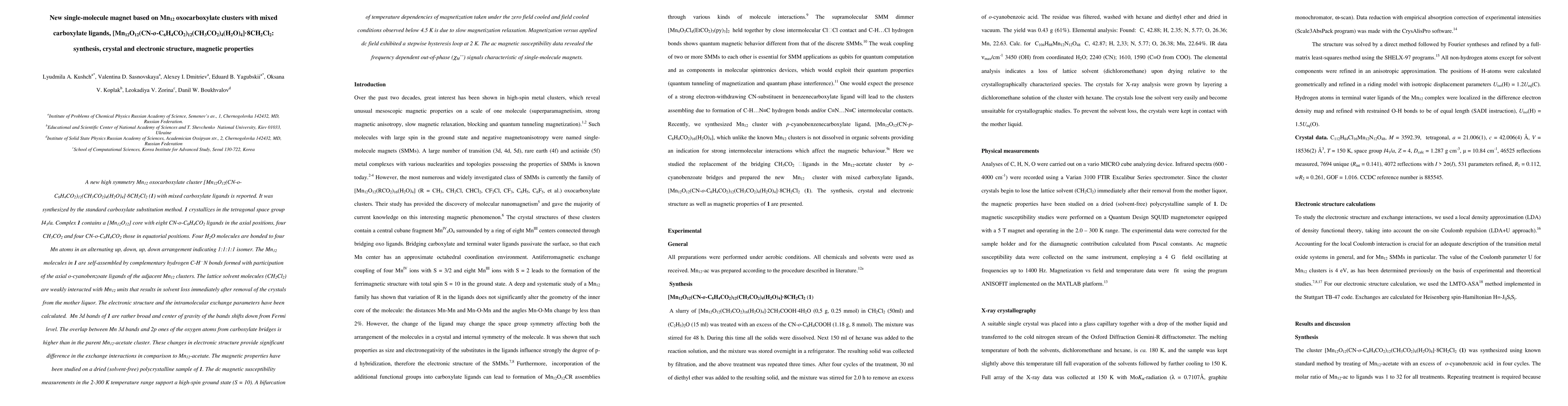 A new single-molecule magnet with high-spin ground state (S = 10) has been synthesized and studied, featuring a Mn12 oxocarboxylate cluster with mixed carboxylate ligands.