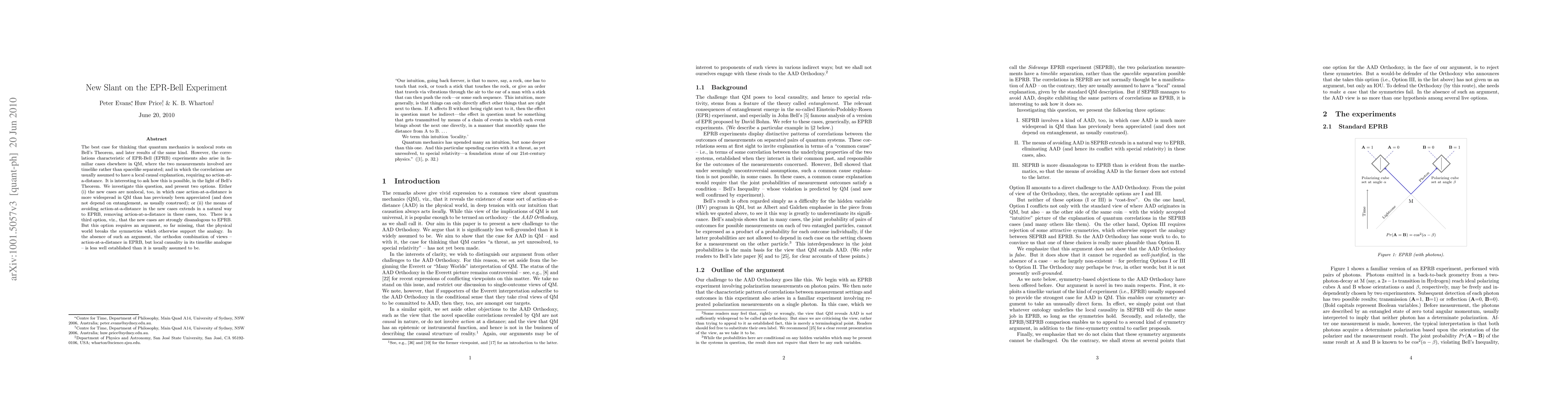The best case for thinking that quantum mechanics is nonlocal rests on Bell's Theorem, and later results of the same kind. However, the correlations characteristic of EPR-Bell (EPRB) experiments also arise in familiar cases elsewhere in QM, where the two measurements involved are timelike rather than spacelike separated; and in which the correlations are usually assumed to have a local causal explanation, requiring no action-at-a-distance. It is interesting to ask how this is possible, in the light of Bell's Theorem. We investigate this question, and present two options. Either (i) the new cases are nonlocal, too, in which case action-at-a-distance is more widespread in QM than has previously been appreciated (and does not depend on entanglement, as usually construed); or (ii) the means of avoiding action-at-a-distance in the new cases extends in a natural way to EPRB, removing action-at-a-distance in these cases, too. There is a third option, viz., that the new cases are strongly disanalogous to EPRB. But this option requires an argument, so far missing, that the physical world breaks the symmetries which otherwise support the analogy. In the absence of such an argument, the orthodox combination of views -- action-at-a-distance in EPRB, but local causality in its timelike analogue -- is less well established than it is usually assumed to be.