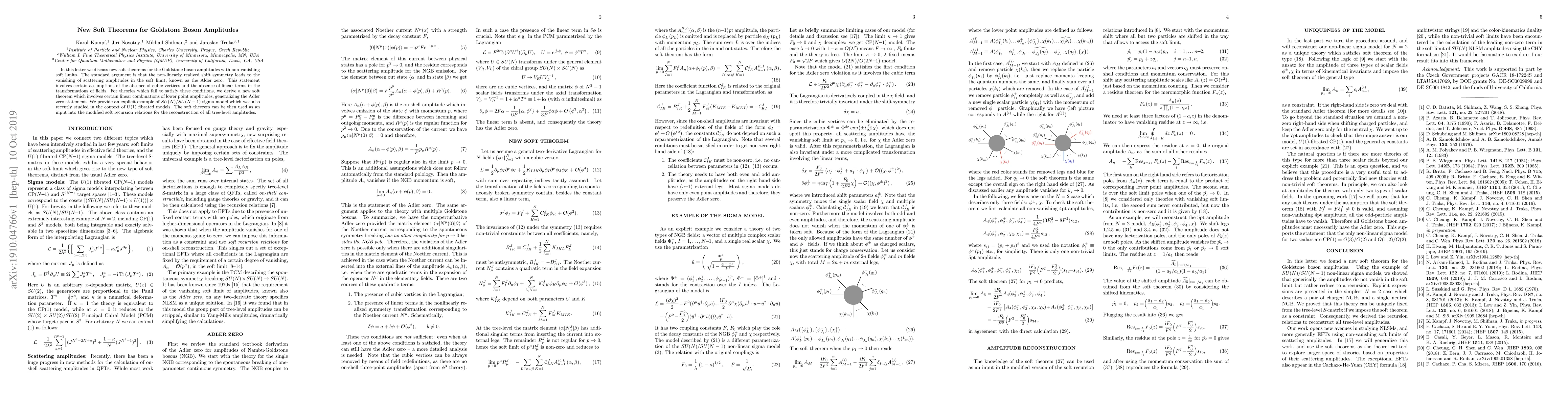 This paper introduces new soft theorems for Goldstone boson amplitudes that diverge from the traditional Adler zero, applicable to theories with non-linearly realized symmetries, cubic vertices, and linear field transformations. It provides a generalized soft theorem and demonstrates its application through an $SU(N)/SU(N-1)$ sigma model, useful for modified soft recursion relations in amplitude reconstruction.