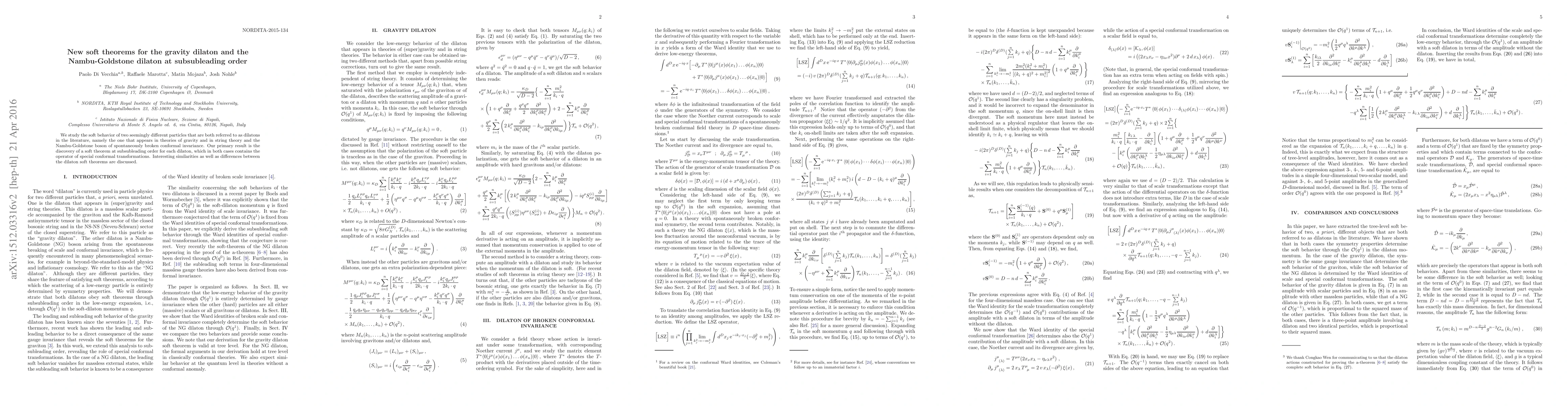 We study the soft behavior of two seemingly different particles that are both referred to as dilatons in the literature, namely the one that appears in theories of gravity and in string theory and the Nambu-Goldstone boson of spontaneously broken conformal invariance. Our primary result is the discovery of a soft theorem at subsubleading order for each dilaton, which in both cases contains the operator of special conformal transformations. Interesting similarities as well as differences between the dilaton soft theorems are discussed.