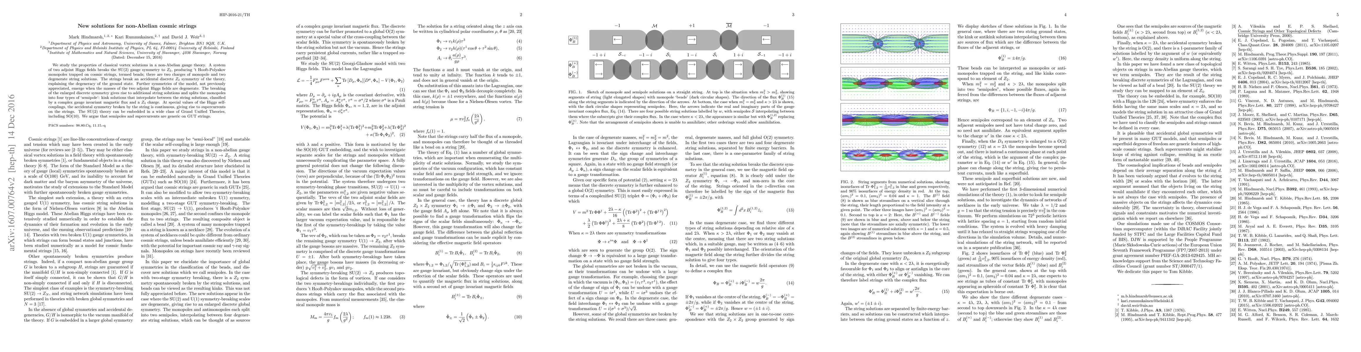 Researchers discovered new solutions for non-Abelian cosmic strings in a theoretical physics model, including 't Hooft-Polyakov monopoles and semipole kink solutions, which shed light on the properties of these objects in Grand Unified Theories.