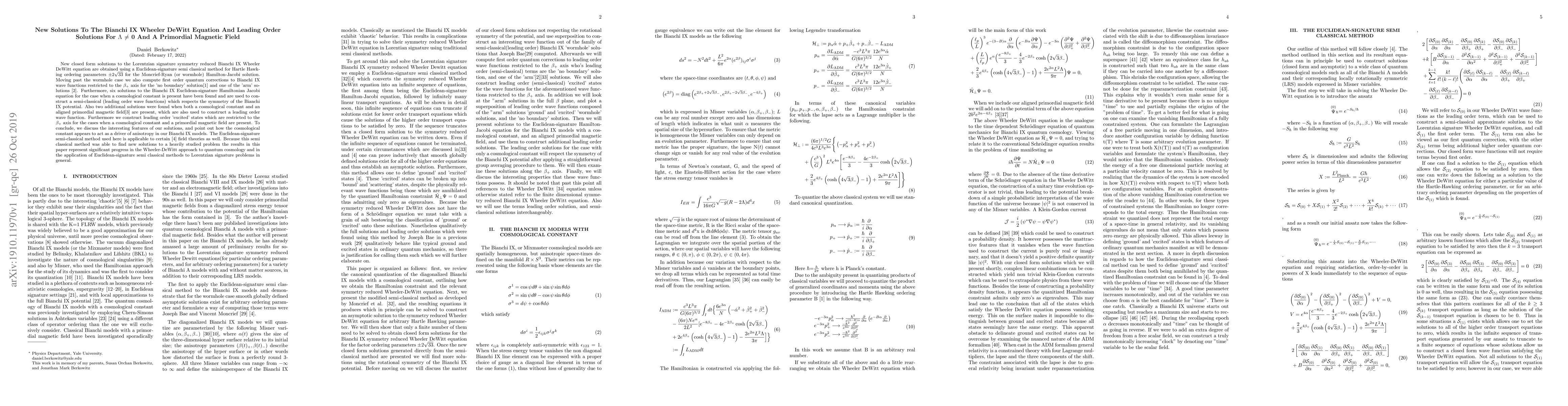 The paper presents new closed form solutions to the Bianchi IX Wheeler DeWitt equation using a Euclidean-signature semi-classical method. It also computes quantum corrections and finds solutions for a cosmological constant and primordial magnetic field, constructing semi-classical wave functions and 'excited' states. The cosmological constant is noted to drive anisotropy in these models, marking significant progress in quantum cosmology and Euclidean-signature semi-classical methods.