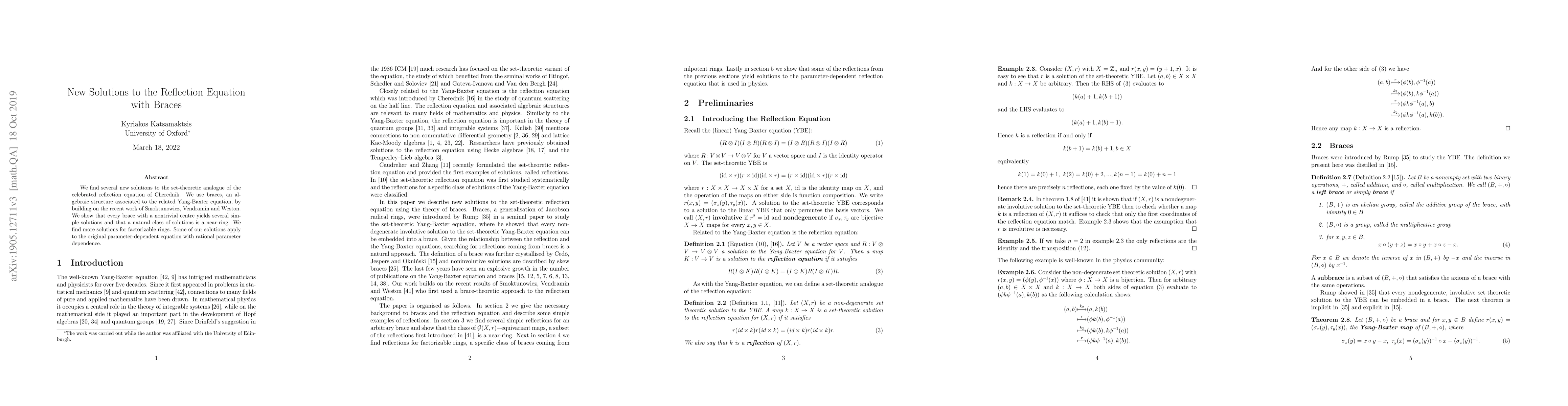 The paper builds on previous work by Smoktunowicz, Vendramin, and Weston, obtaining new solutions to the reflection equation using braces, demonstrating that every brace yields simple solutions and identifying a class of solutions as near-rings. The research also explores solutions for factorizable rings, some applicable to the original parameter-dependent equation.