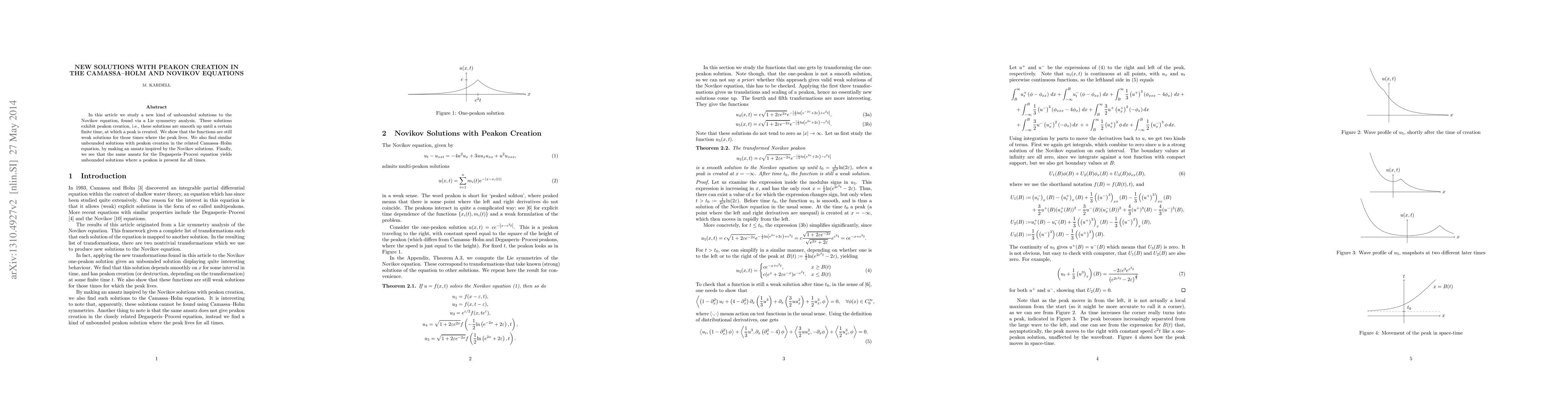 This paper investigates new unbounded solutions with peakon creation in the Novikov and Camassa-Holm equations, discovered through Lie symmetry analysis. It demonstrates that these solutions remain weak solutions during peakon existence and extends similar findings to the Degasperis-Procesi equation.