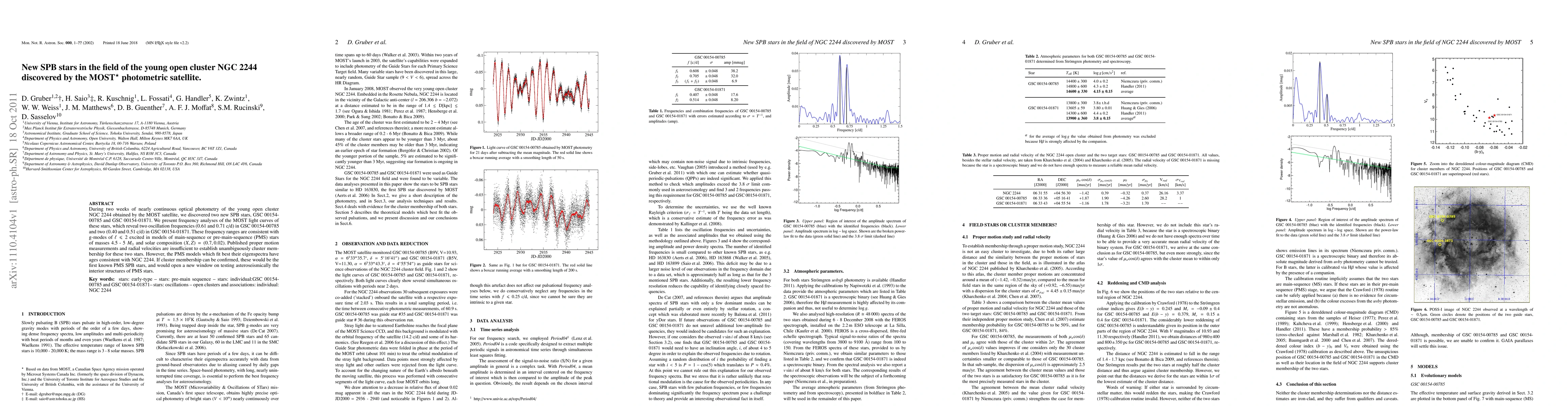 The MOST satellite discovered two new Slowly Pulsating B (SPB) stars, GSC 00154-00785 and GSC 00154-01871, in the NGC 2244 open cluster. Their light curves show oscillation frequencies indicative of g-modes in pre-main-sequence stars of 4.5-5 $M_{\odot}$. Cluster membership remains uncertain, but the best-fit models suggest ages consistent with NGC 2244.