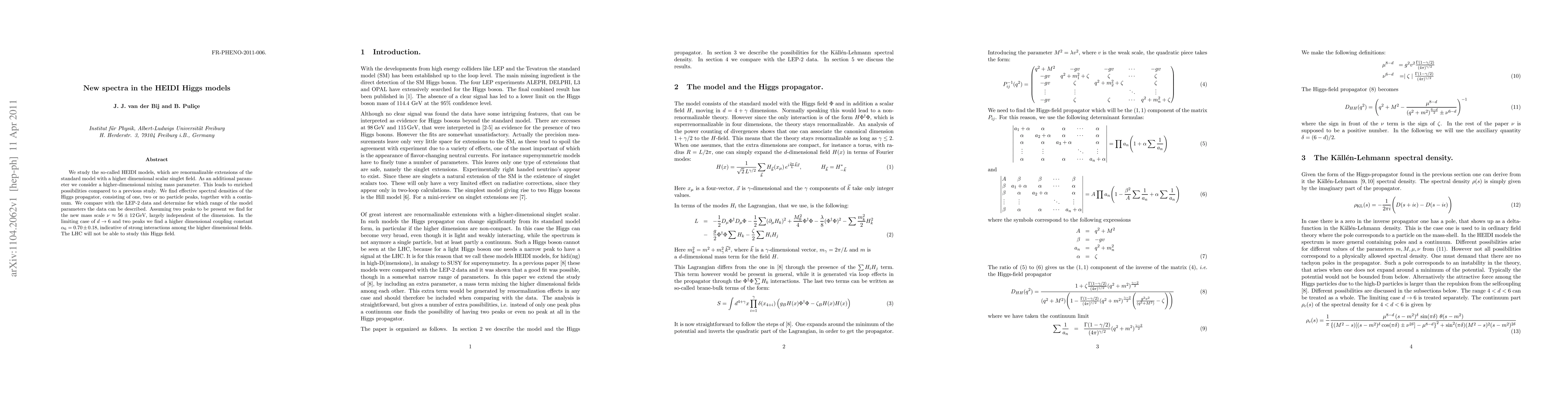 We study the so-called HEIDI models, which are renormalizable extensions of the standard model with a higher dimensional scalar singlet field. As an additional parameter we consider a higher-dimensional mixing mass parameter. This leads to enriched possibilities compared to a previous study. We find effective spectral densities of the Higgs propagator, consisting of one, two or no particle peaks, together with a continuum. We compare with the LEP-2 data and determine for which range of the model parameters the data can be described. Assuming two peaks to be present we find for the new mass scale $\nu\approx 56\pm12 \gev$, largely independent of the dimension. In the limiting case of $d\rightarrow 6$ and two peaks we find a higher dimensional coupling constant $\alpha_6=0.70 \pm 0.18$, indicative of strong interactions among the higher dimensional fields. The LHC will not be able to study this Higgs field.