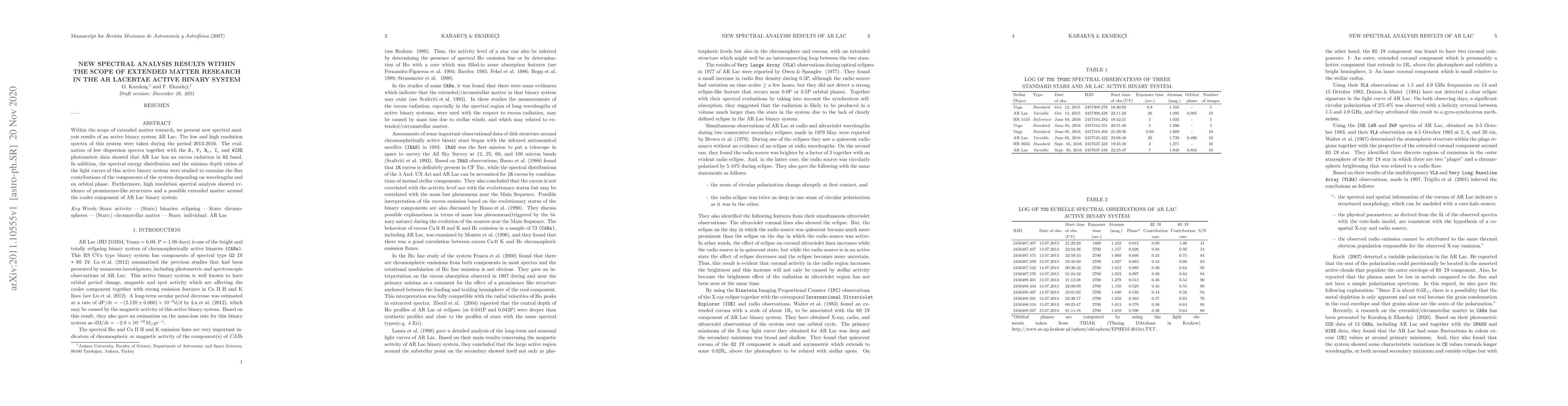 This paper presents new spectral analysis of the active binary system AR Lacertae, revealing excess radiation in a specific band and evidence of extended matter around the cooler component.