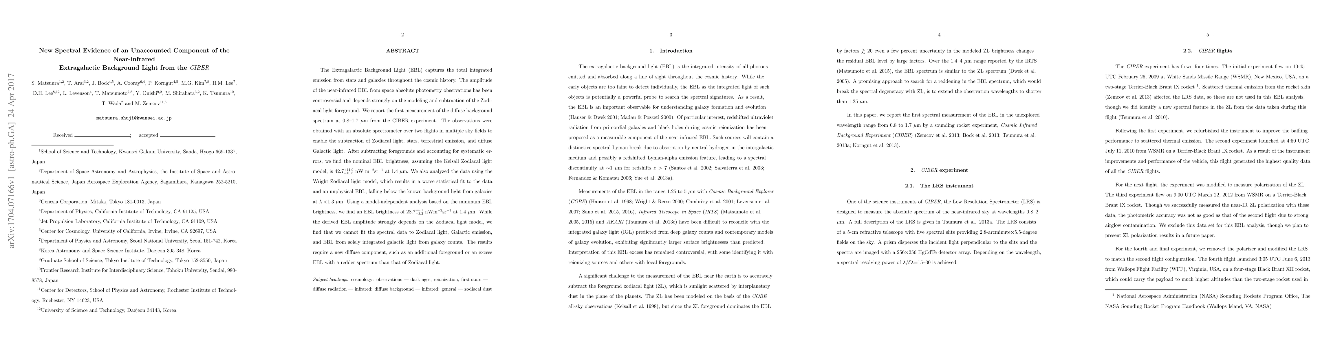 The CIBER experiment provides new spectral evidence of an unaccounted component in the near-infrared Extragalactic Background Light (EBL) at 0.8-1.7 um, revealing a nominal EBL brightness of 42.7+11.9/-10.6 nW/m2/sr at 1.4 um, suggesting the need for a new diffuse component beyond existing models.