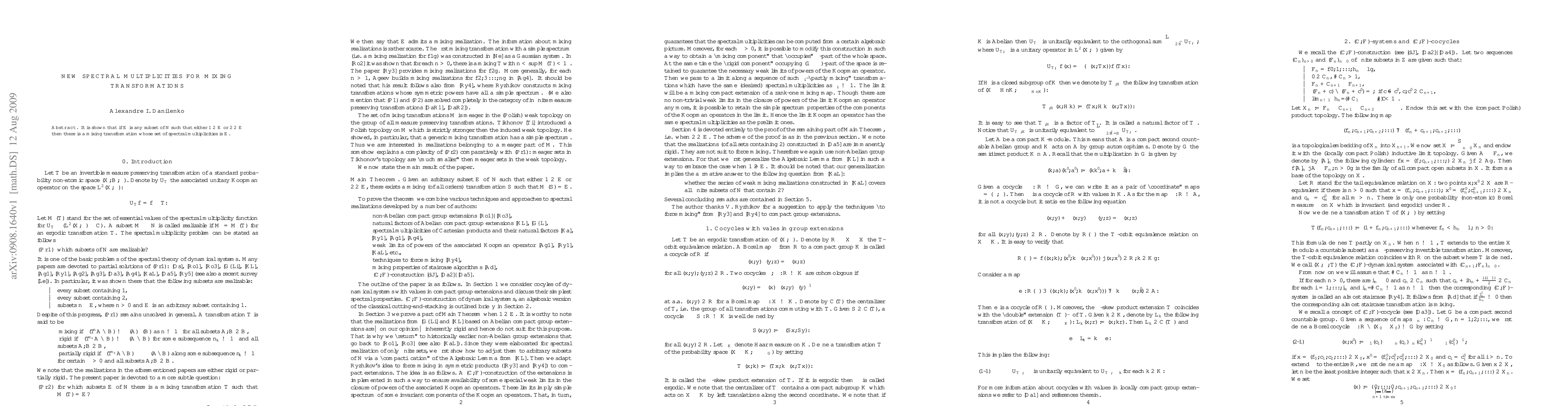 A research paper shows that a specific type of mathematical transformation can have spectral multiplicities corresponding to any subset of natural numbers containing 1 or 2, implying new possibilities for understanding mixing transformations.