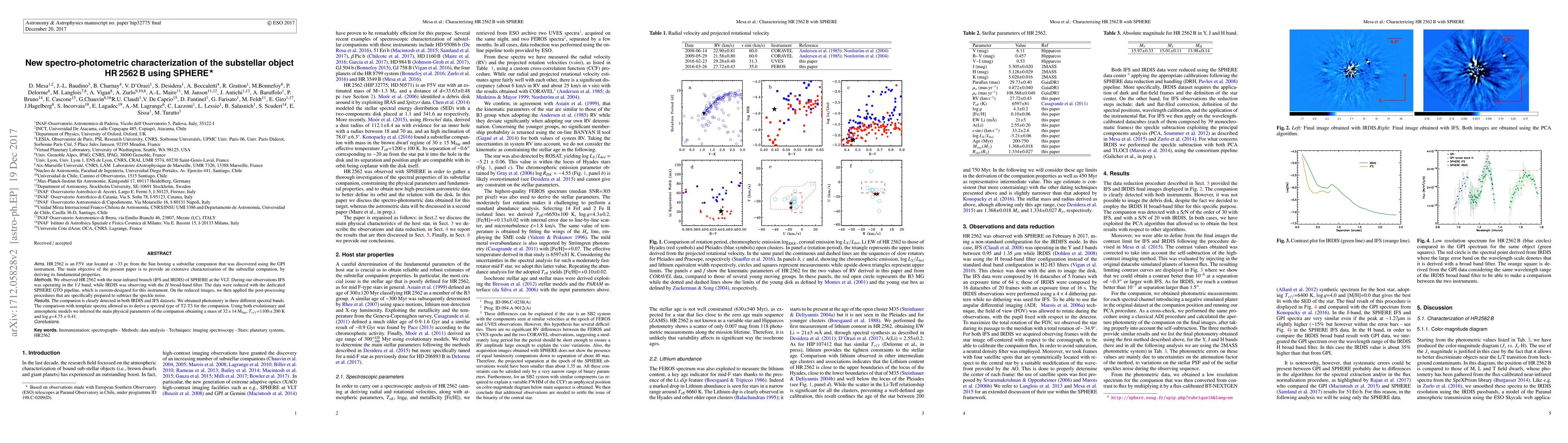This paper characterizes the substellar companion of HR 2562 B using SPHERE at the VLT, determining its spectral type as T2-T3 and deriving its mass, effective temperature, and surface gravity through detailed spectro-photometric analysis. The companion's fundamental properties are inferred using both evolutionary and atmospheric models.