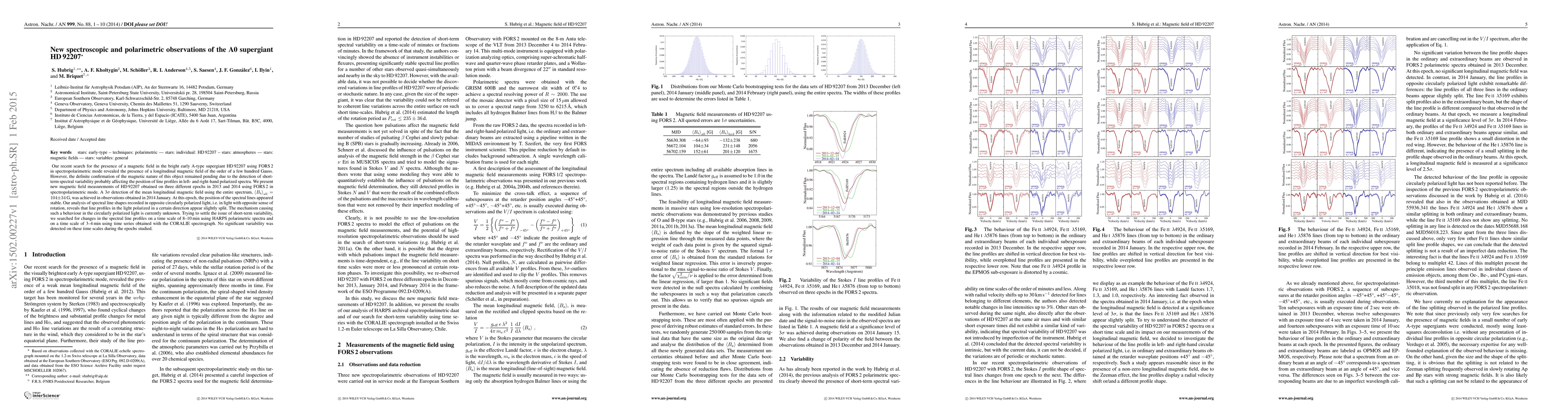 A-type supergiant HD92207 using FORS2 in spectropolarimetric mode revealed the