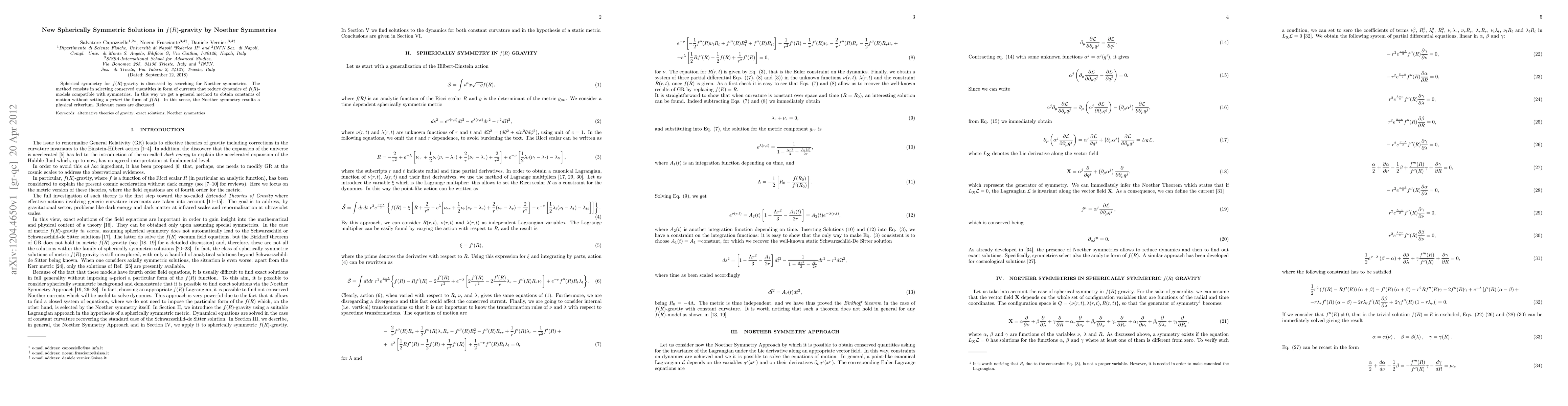 This paper explores new spherically symmetric solutions in f(R)-gravity using Noether symmetries to derive conserved quantities, providing a general method for obtaining constants of motion without predefining the form of f(R), thereby establishing Noether symmetry as a physical criterion. Specific relevant cases are also examined.