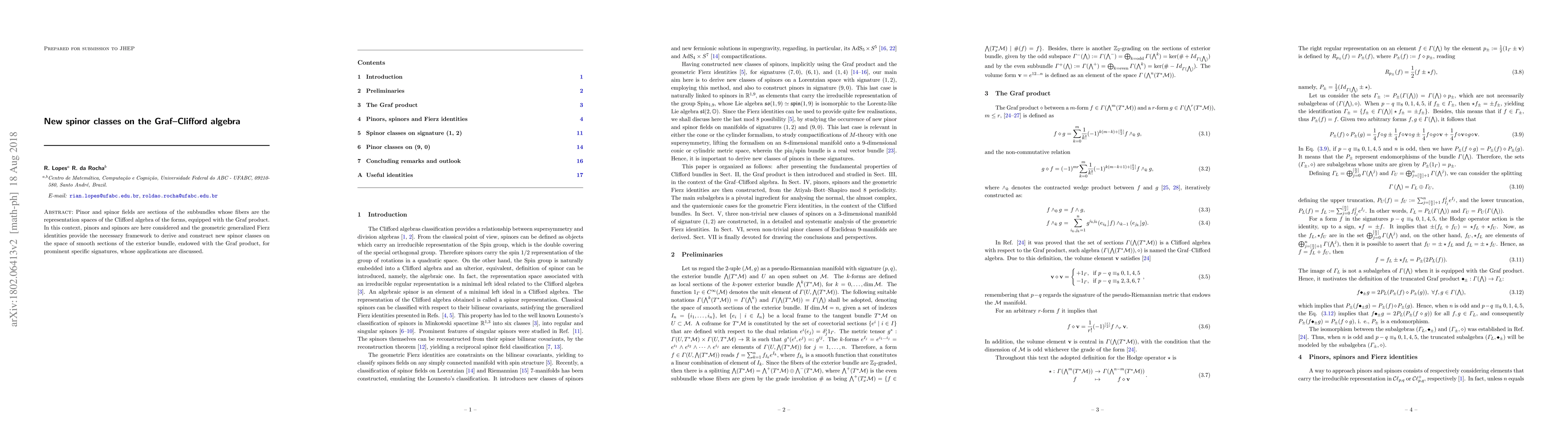 This paper introduces new spinor classes on the Graf-Clifford algebra using geometric generalized Fierz identities, focusing on pinors and spinors as sections of subbundles with Graf product-equipped fibers. Applications of these new spinor classes are also discussed.