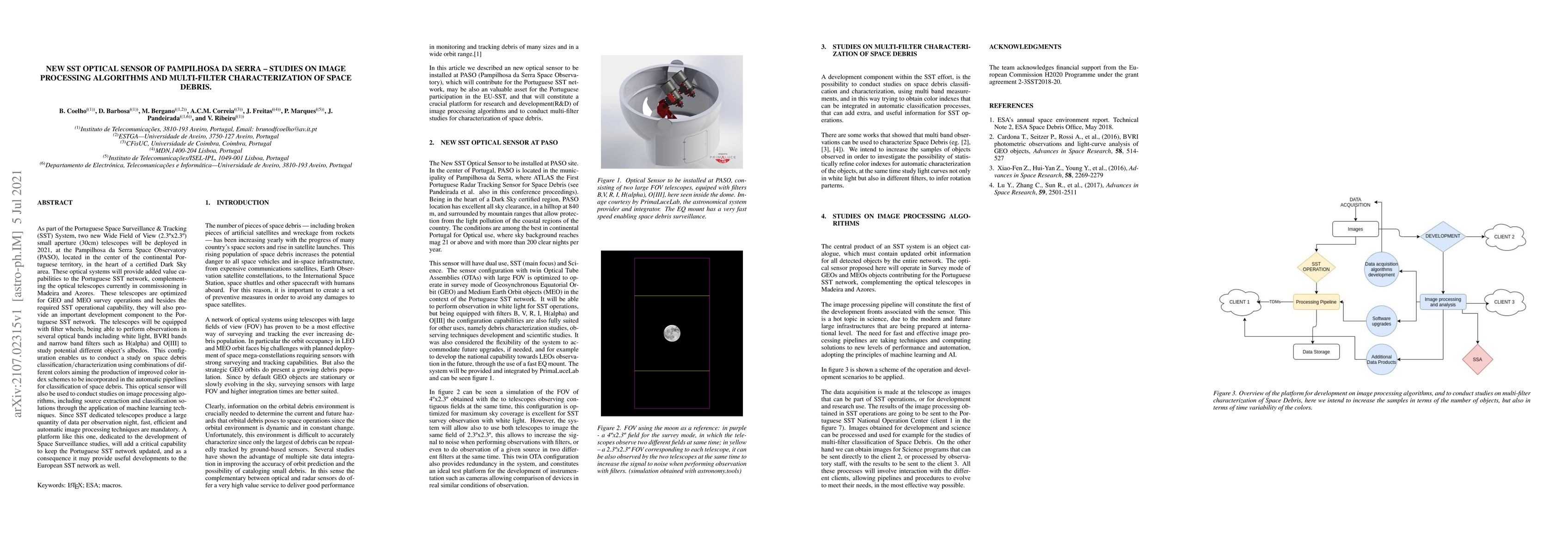 As part of the Portuguese Space Surveillance and Tracking (SST) System, two new Wide Field of View (2.3deg x 2.3deg) small aperture (30cm) telescopes will be deployed in 2021, at the Pampilhosa da Serra Space Observatory (PASO), located in the center of the continental Portuguese territory, in the heart of a certified Dark Sky area. These optical systems will provide added value capabilities to the Portuguese SST network, complementing the optical telescopes currently in commissioning in Madeira and Azores. These telescopes are optimized for GEO and MEO survey operations and besides the required SST operational capability, they will also provide an important development component to the Portuguese SST network. The telescopes will be equipped with filter wheels, being able to perform observations in several optical bands including white light, BVRI bands and narrow band filters such as H(alpha) and O[III] to study potential different objects' albedos. This configuration enables us to conduct a study on space debris classification$/$characterization using combinations of different colors aiming the production of improved color index schemes to be incorporated in the automatic pipelines for classification of space debris. This optical sensor will also be used to conduct studies on image processing algorithms, including source extraction and classification solutions through the application of machine learning techniques. Since SST dedicated telescopes produce a large quantity of data per observation night, fast, efficient and automatic image processing techniques are mandatory. A platform like this one, dedicated to the development of Space Surveillance studies, will add a critical capability to keep the Portuguese SST network updated, and as a consequence it may provide useful developments to the European SST network as well.