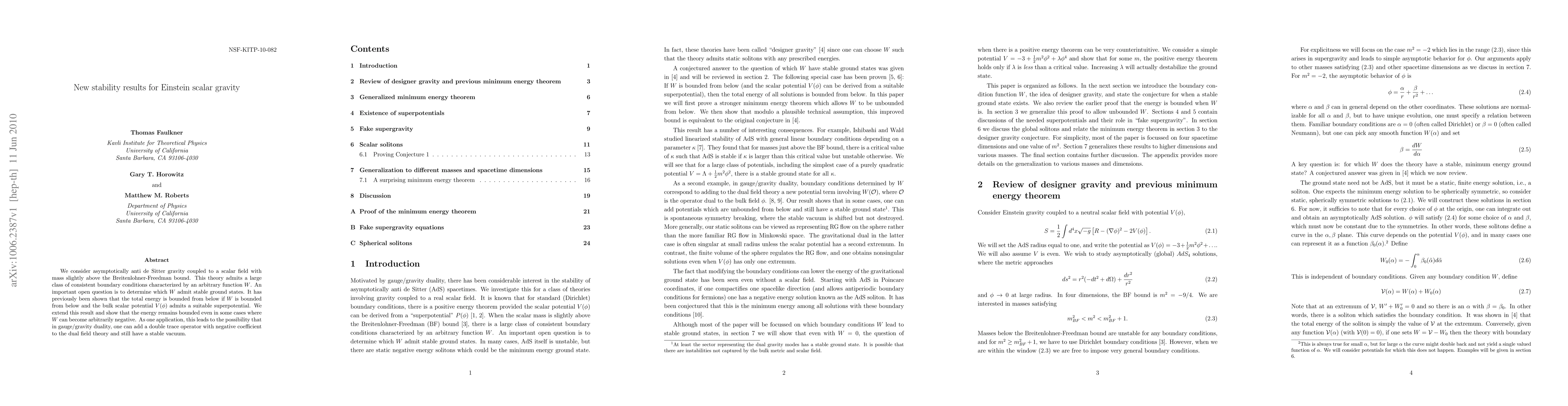 Researchers investigate stability in Einstein scalar gravity coupled to a scalar field with mass above the Breitenlohner-Freedman bound, finding that energy remains bounded even when the boundary function W can become arbitrarily negative.