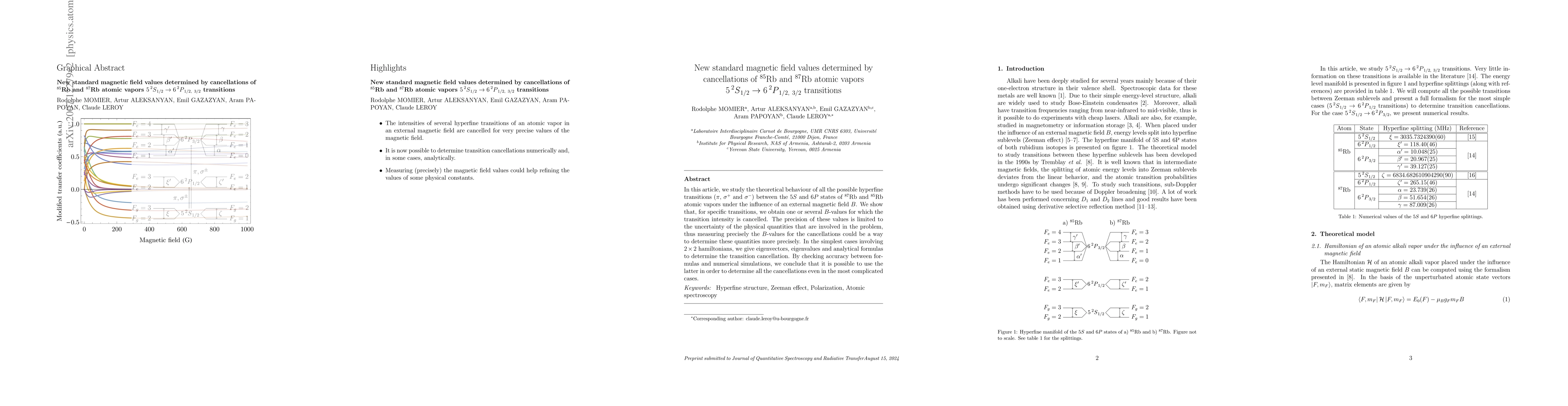 In this article, we study the theoretical behaviour of all the possible hyperfine transitions ($\pi$, $\sigma^+$ and $\sigma^-$) between the $5S$ and $6P$ states of ${}^{87}\text{Rb}$ and ${}^{85}\text{Rb}$ atomic vapors under the influence of an external magnetic field $B$. We show that, for specific transitions, we obtain one or several $B$-values for which the transition intensity is cancelled. The precision of these values is limited to the uncertainty of the physical quantities that are involved in the problem, thus measuring precisely the $B$-values for the cancellations could be a way to determine these quantities more precisely. In the simplest cases involving $2\times 2$ hamiltonians, we give eigenvectors, eigenvalues and analytical formulas to determine the transition cancellation. By checking accuracy between formulas and numerical simulations, we conclude that it is possible to use the latter in order to determine all the cancellations even in the most complicated cases.