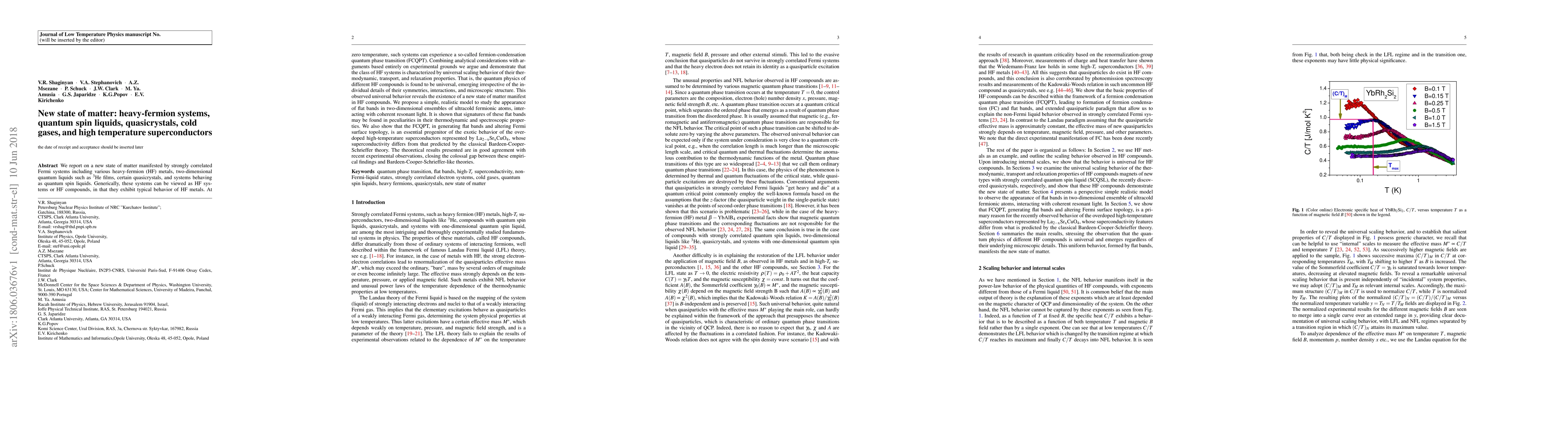 This paper introduces a new state of matter characterized by strongly correlated heavy-fermion systems, quantum spin liquids, and quasicrystals, showing universal scaling behavior across their thermodynamic, transport, and relaxation properties. It also proposes a model for ultracold fermionic atoms to study flat bands and links these phenomena to the exotic superconductivity in high-temperature superconductors.