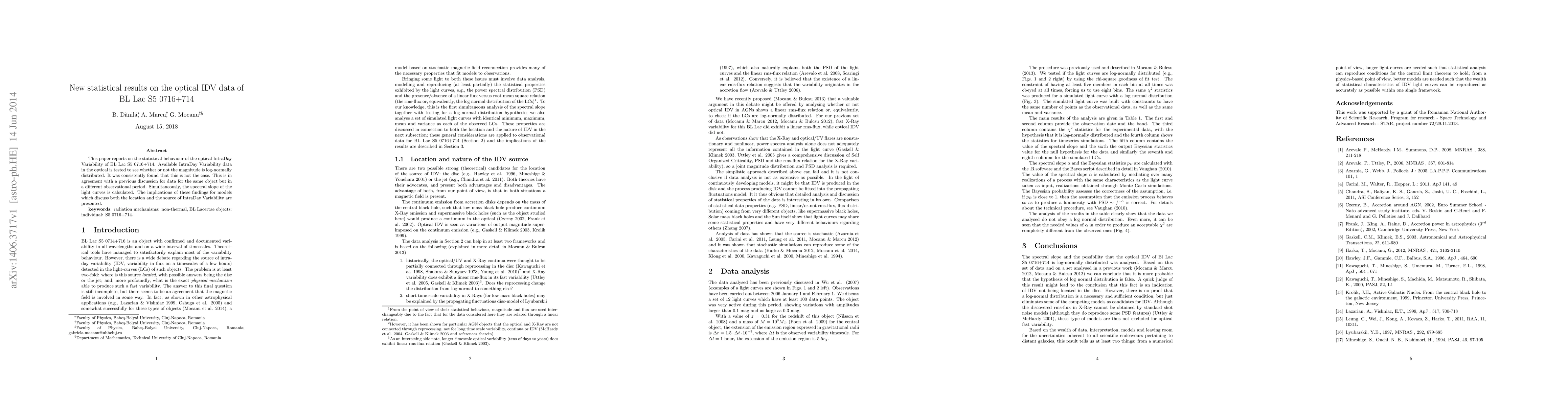 Researchers found that optical IntraDay Variability data for BL Lac S5 0716+714 is not log-normally distributed, contradicting previous discussions. The study also calculated the spectral slope of light curves and discussed implications for models explaining variability.