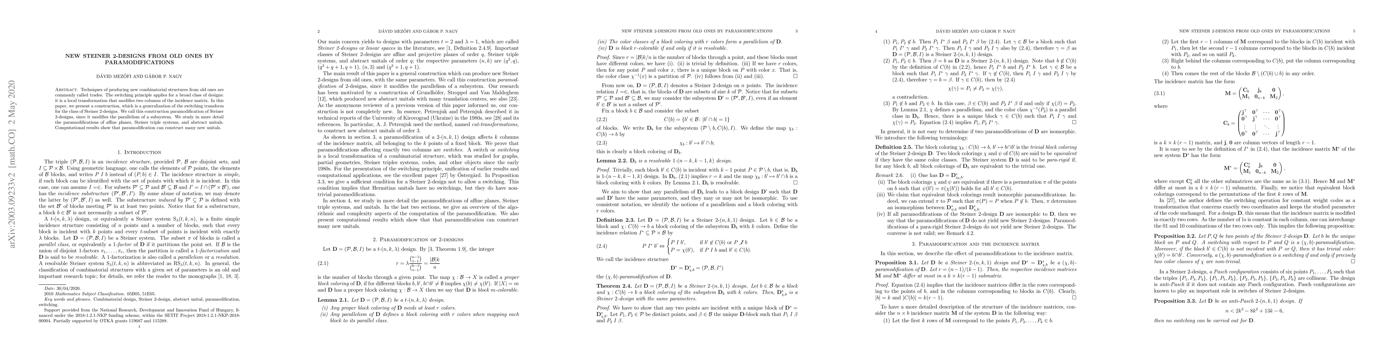 This paper introduces a generalized switching transform called paramodification for Steiner 2-designs, specifically focusing on affine planes, Steiner triple systems, and abstract unitals. Computational results demonstrate that paramodification effectively generates numerous new combinatorial structures, particularly unitals.