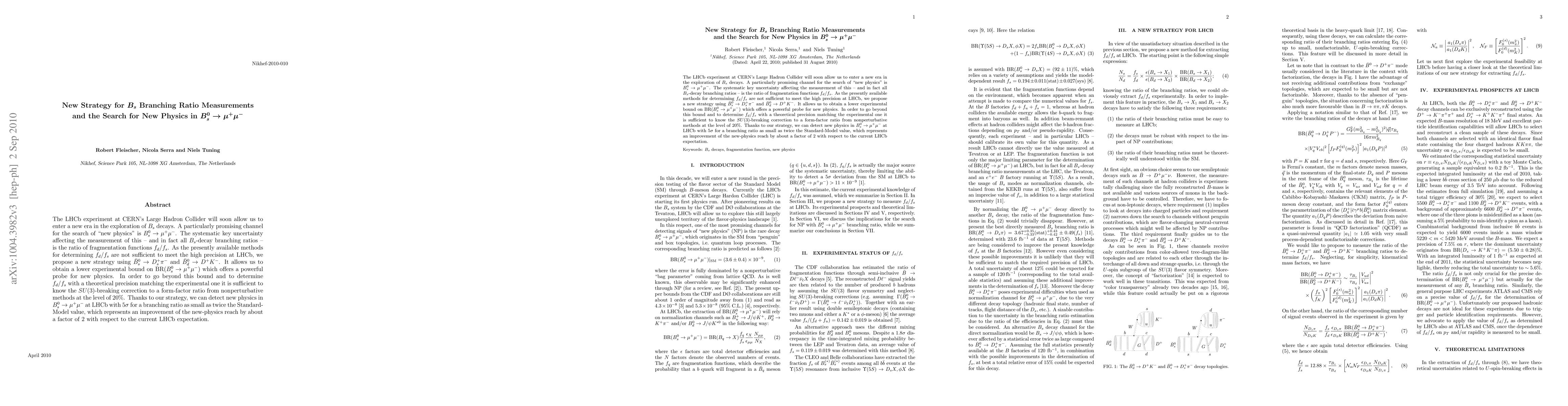 The LHCb experiment proposes a new strategy to measure B_s branching ratios and search for new physics in B^0_s -> mu^+ mu^- decays by addressing the key uncertainty in fragmentation functions. This strategy, using \bar B^0_s -> D_s^+ pi^- and \bar B^0_d -> D^+ K^- channels, enhances the new-physics detection capability by improving the reach by a factor of two.