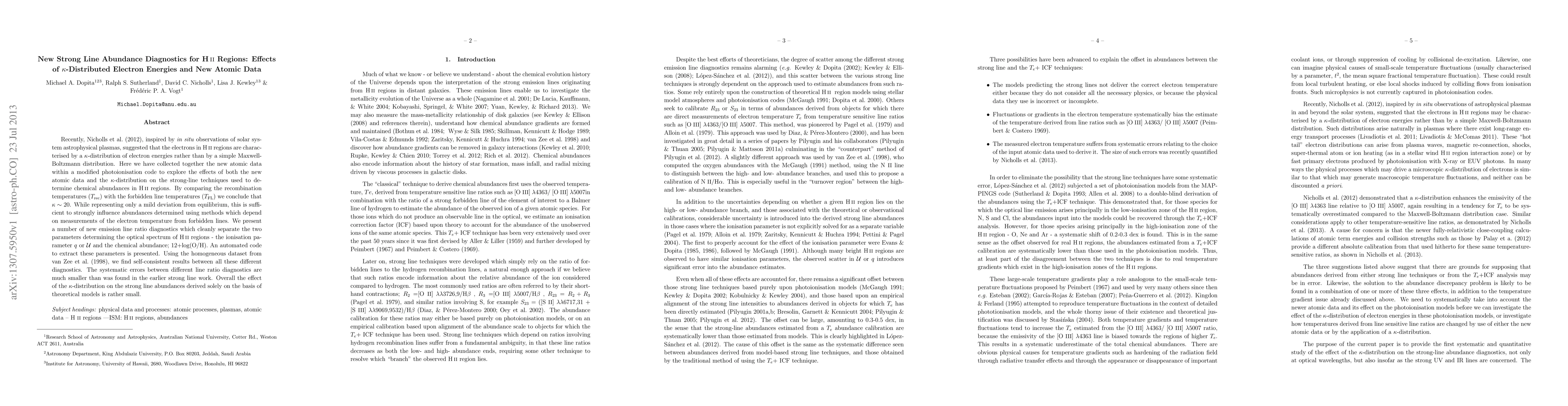 This paper explores the impact of $\kappa$-distributed electron energies on strong line diagnostics in \HII regions, using new atomic data and a modified photoionisation code. It finds that $\kappa \sim 20$ influences abundance determinations, presenting new diagnostics that separate ionisation parameters and chemical abundances, and showing reduced systematic errors compared to earlier methods.