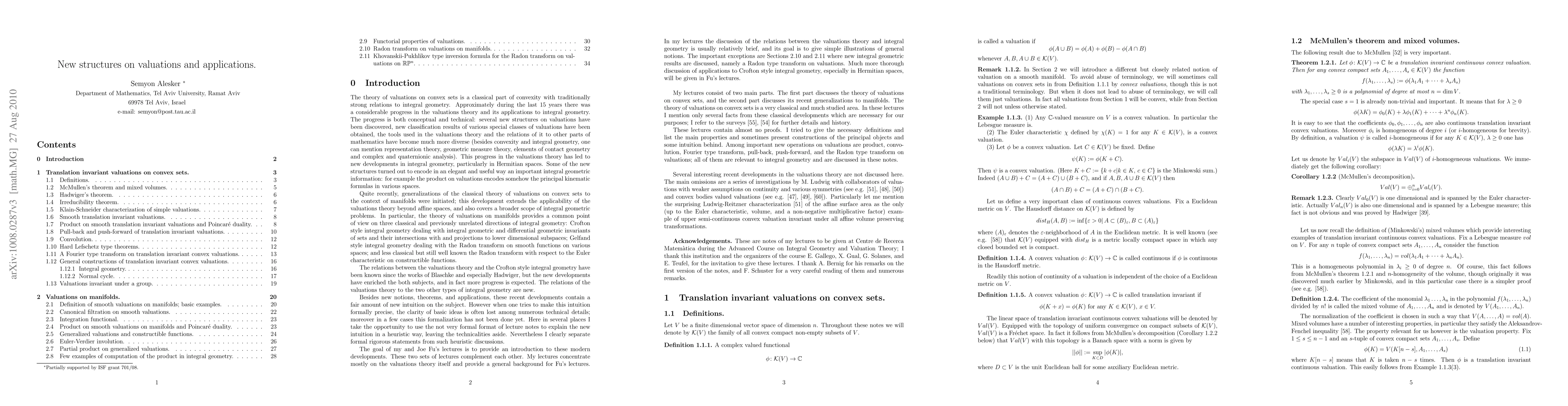 Summary: This paper reviews recent advancements in valuation theory on convex sets and their extensions to manifolds, emphasizing applications in integral geometry and discussing several practical implications.