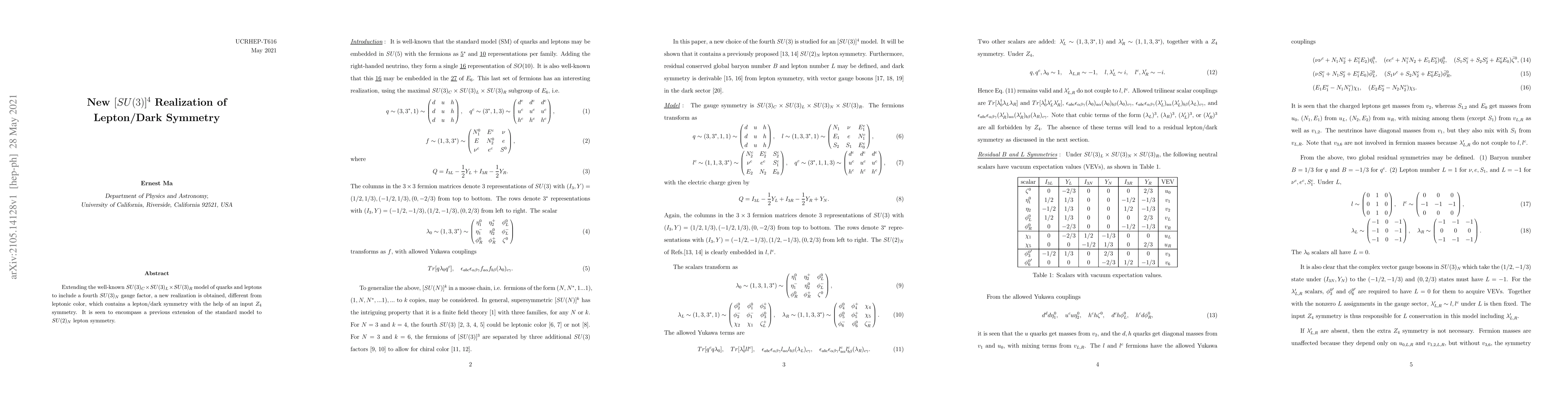 This paper proposes a new $[SU(3)]^4$ gauge symmetry model extending the standard $SU(3)_C \times SU(3)_L \times SU(3)_R$ framework, introducing a fourth $SU(3)_N$ factor and a $Z_4$ symmetry to realize a novel lepton/dark symmetry, differing from leptonic color.