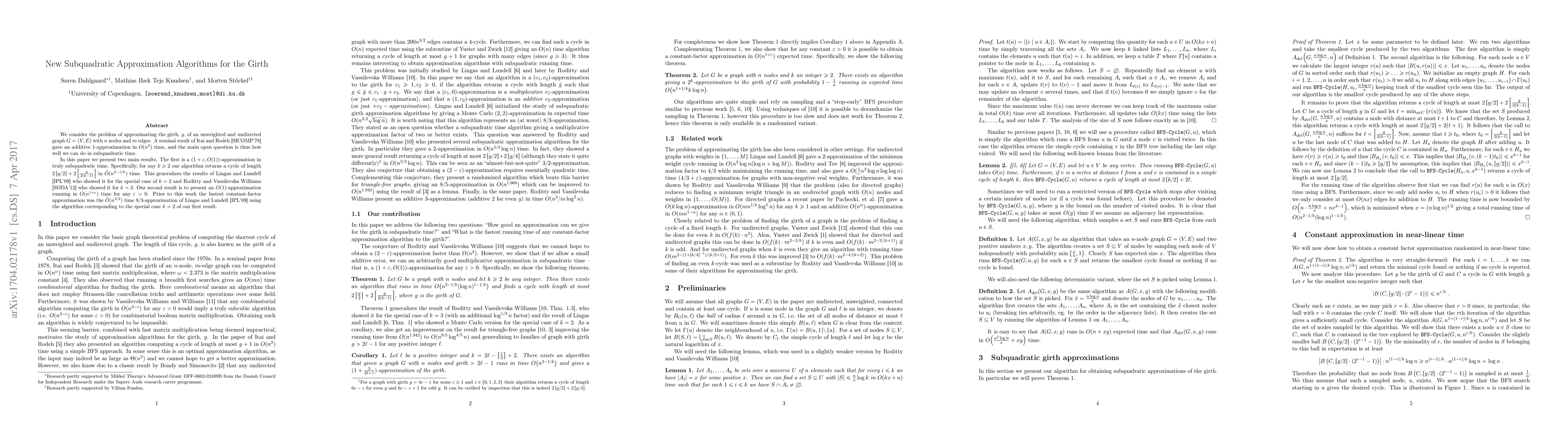 This paper presents new subquadratic approximation algorithms for estimating the girth of an unweighted, undirected graph. The authors achieve a $(1+\varepsilon,O(1))$-approximation in $\tilde{O}(n^{2-1/k})$ time for any $k \geq 2$, and an $O(1)$-approximation in $O(n^{1+\varepsilon})$ time for any $\varepsilon > 0$.