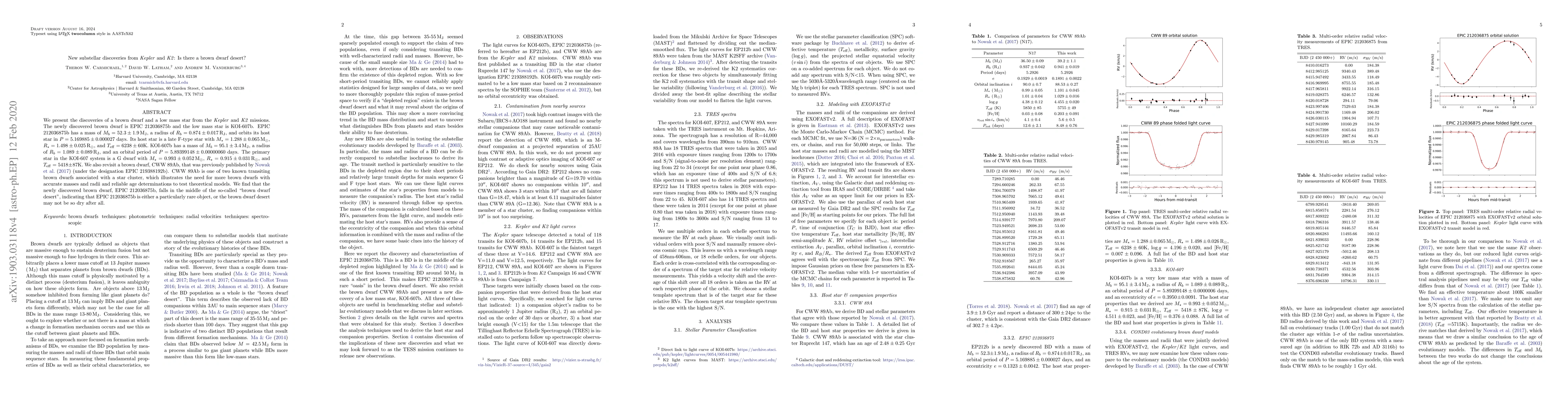 We present the discoveries of a brown dwarf and a low mass star from the Kepler and K2 missions. The newly discovered brown dwarf is EPIC 212036875b and the low mass star is KOI-607b. EPIC 212036875b has a mass of $ M_{b}=52.3\pm 1.9M_J$, a radius of $ R_{b}=0.874\pm 0.017R_J$, and orbits its host star in $ P=5.169885 \pm 0.000027$ days. Its host star is a late F-type star with $ M_\star=1.288\pm 0.065M_\odot$, $ R_\star=1.498\pm 0.025R_\odot$, and $ T_{\rm eff}=6238 \pm 60$K. KOI-607b has a mass of $ M_{b}=95.1\pm 3.4M_J$, a radius of $ R_{b}=1.089\pm 0.089R_J$, and an orbital period of $ P=5.89399148 \pm 0.00000060$ days. The primary star in the KOI-607 system is a G dwarf with $ M_\star=0.993\pm 0.052M_\odot$, $ R_\star=0.915\pm 0.031R_\odot$, and $ T_{\rm eff} = 5418\pm 87$K. We also revisit a brown dwarf, CWW 89Ab, that was previously published by Nowak et al. 2017 (under the designation EPIC 219388192b). CWW 89Ab is one of two known transiting brown dwarfs associated with a star cluster, which illustrates the need for more brown dwarfs with accurate masses and radii and reliable age determinations to test theoretical models. We find that the newly discovered brown dwarf, EPIC 212036875b, falls in the middle of the so-called "brown dwarf desert", indicating that EPIC 212036875b is either a particularly rare object, or the brown dwarf desert may not be so dry after all.