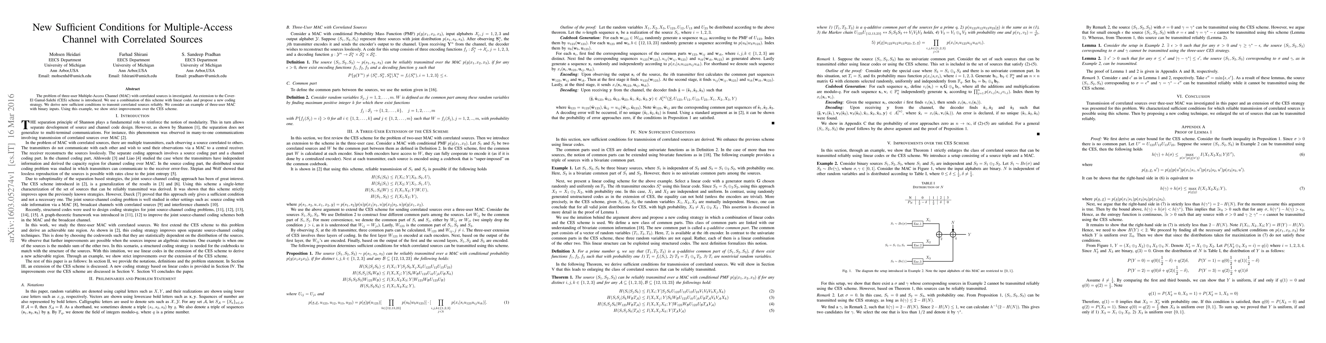 This paper introduces a new coding strategy for a three-user Multiple-Access Channel (MAC) with correlated sources, extending the CES scheme and combining it with linear codes. It proposes new sufficient conditions for reliable transmission, demonstrating strict improvements over the CES scheme in a binary input example.
