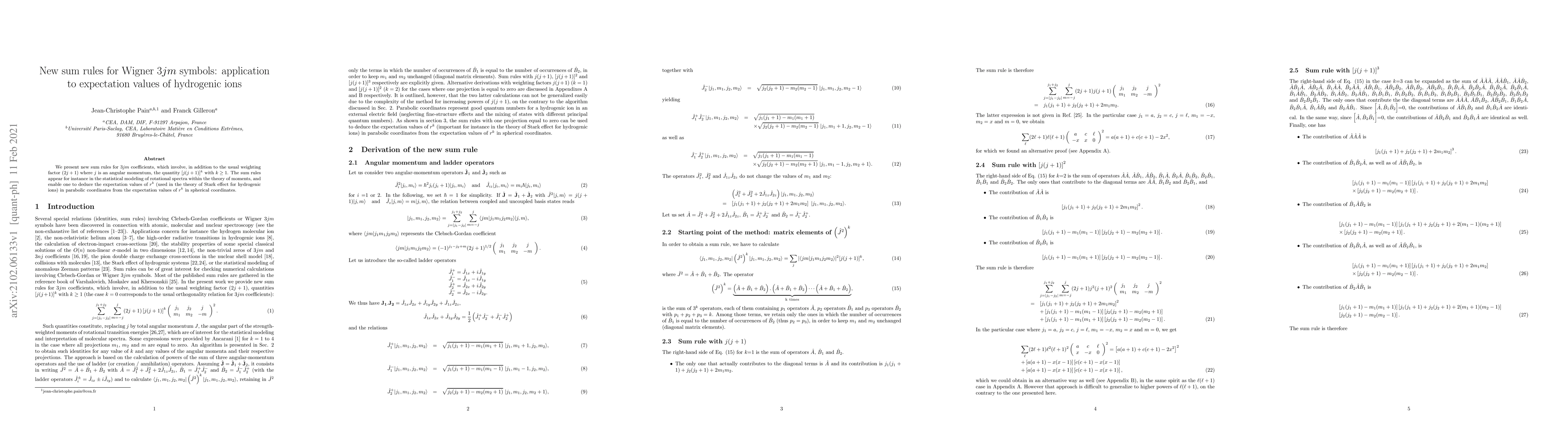 This paper introduces new sum rules for Wigner 3jm symbols, incorporating additional factors $[j(j + 1)]^k$, and applies these to compute expectation values of $r^k$ in hydrogenic ions, facilitating the transition from spherical to parabolic coordinates.
