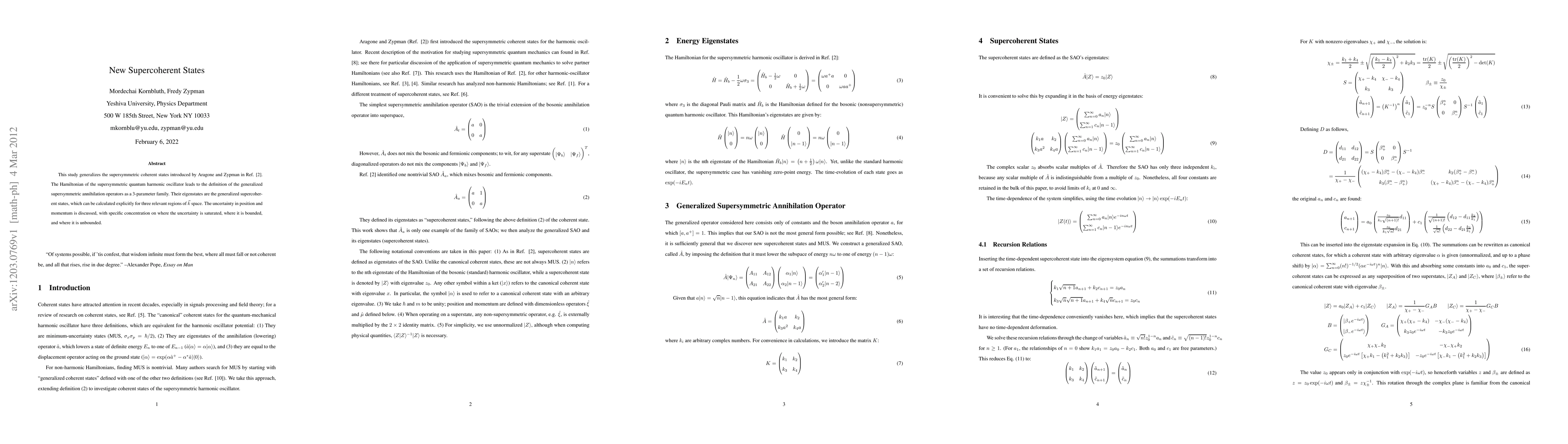 The paper introduces a 3-parameter family of generalized supersymmetric annihilation operators, enabling explicit calculation of generalized supercoherent states and analysis of their uncertainty properties.